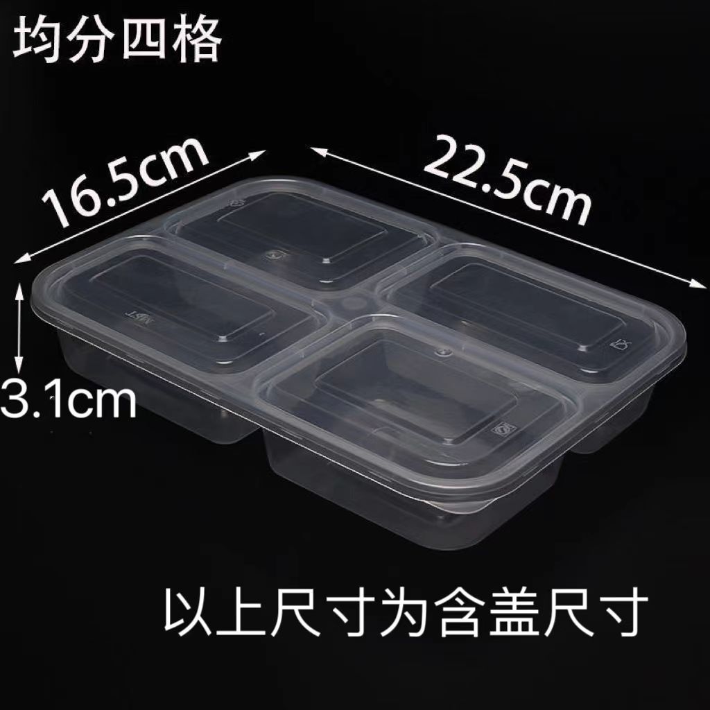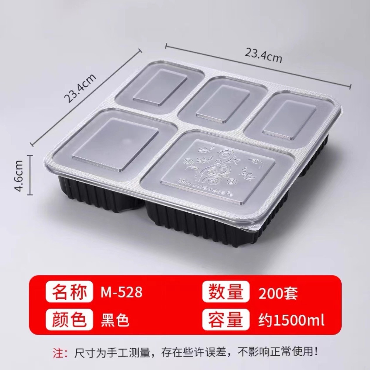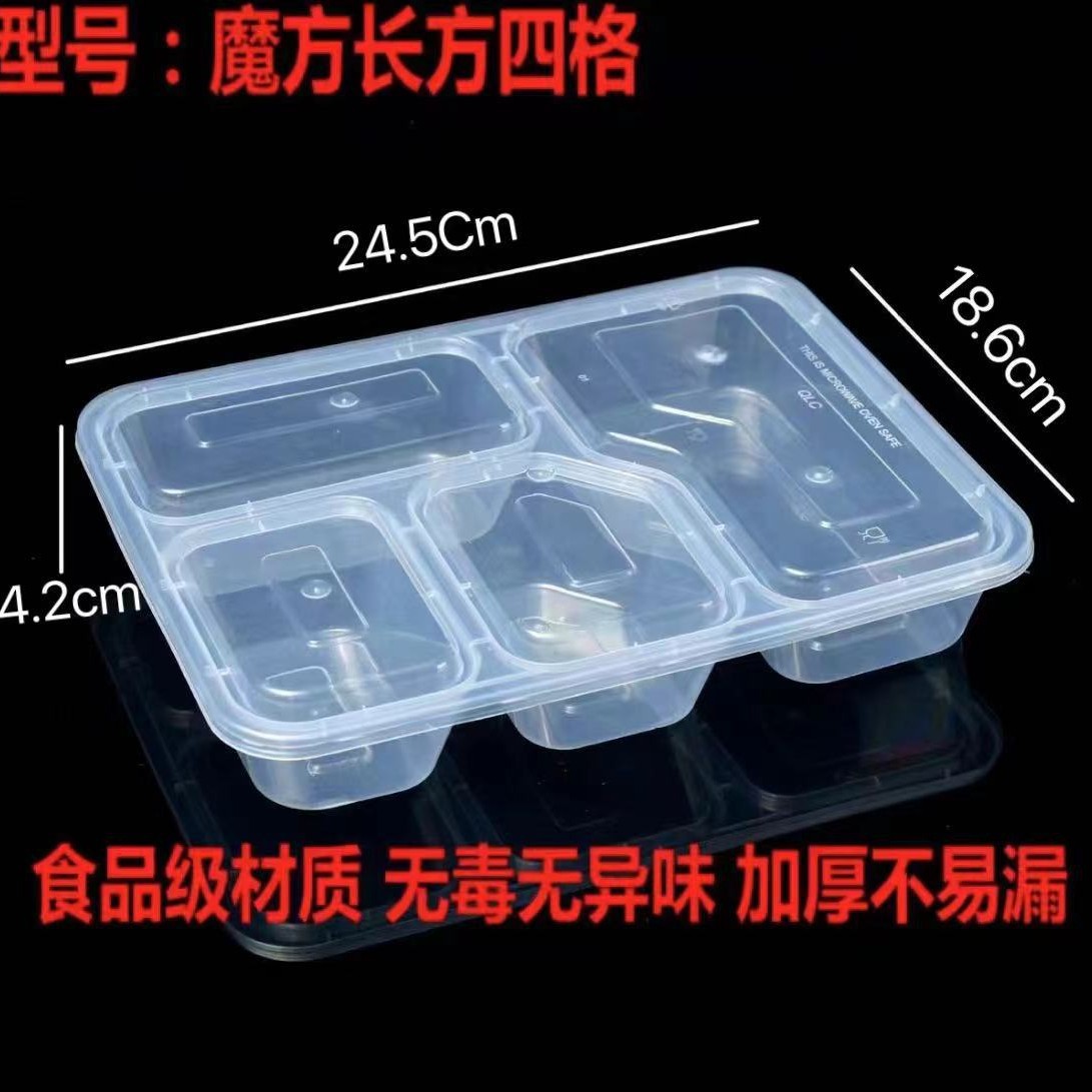 厂家方盒一次性黑色四格餐盒三格外卖打包盒多格PP加厚塑料快餐盒