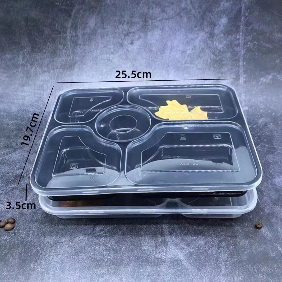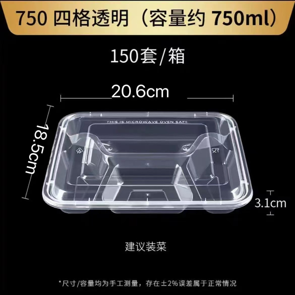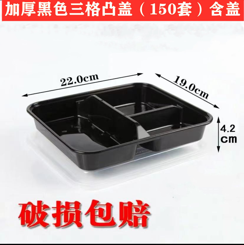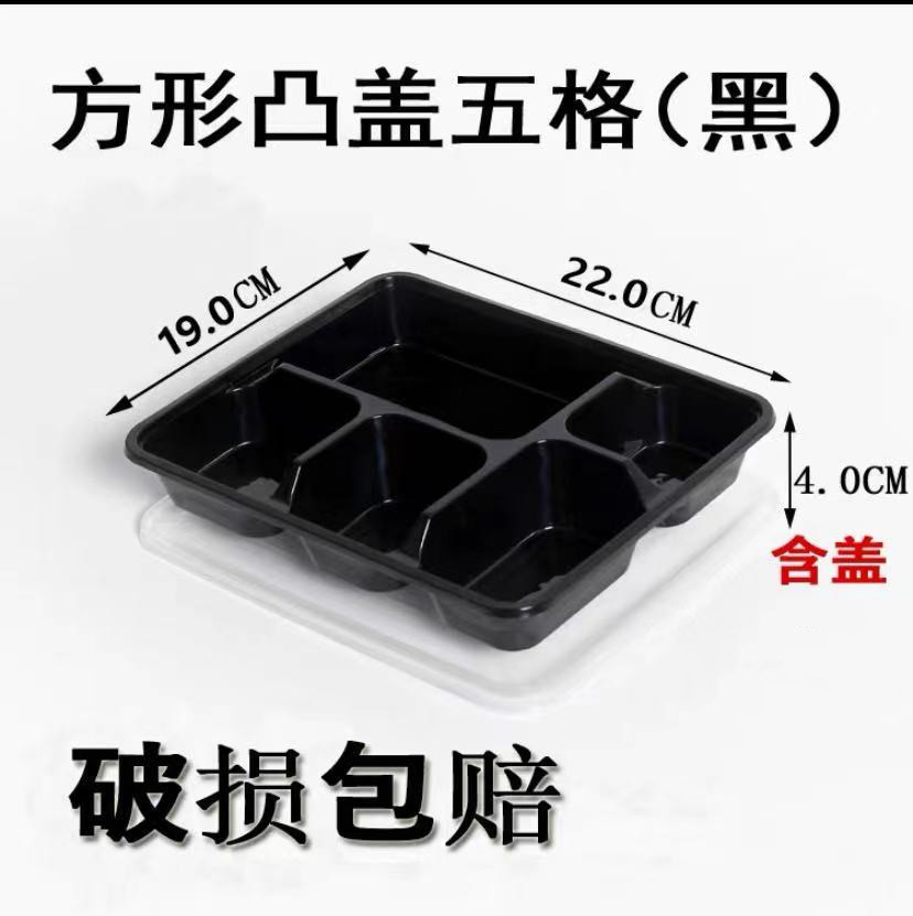 厂家方盒一次性黑色四格餐盒三格外卖打包盒多格PP加厚塑料快餐盒