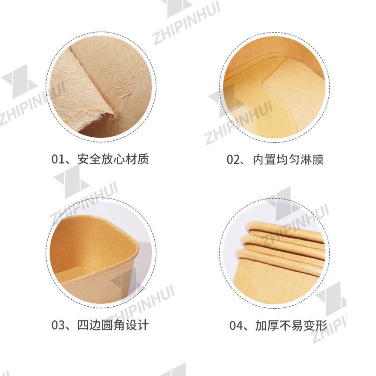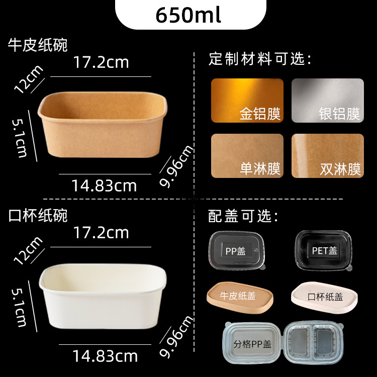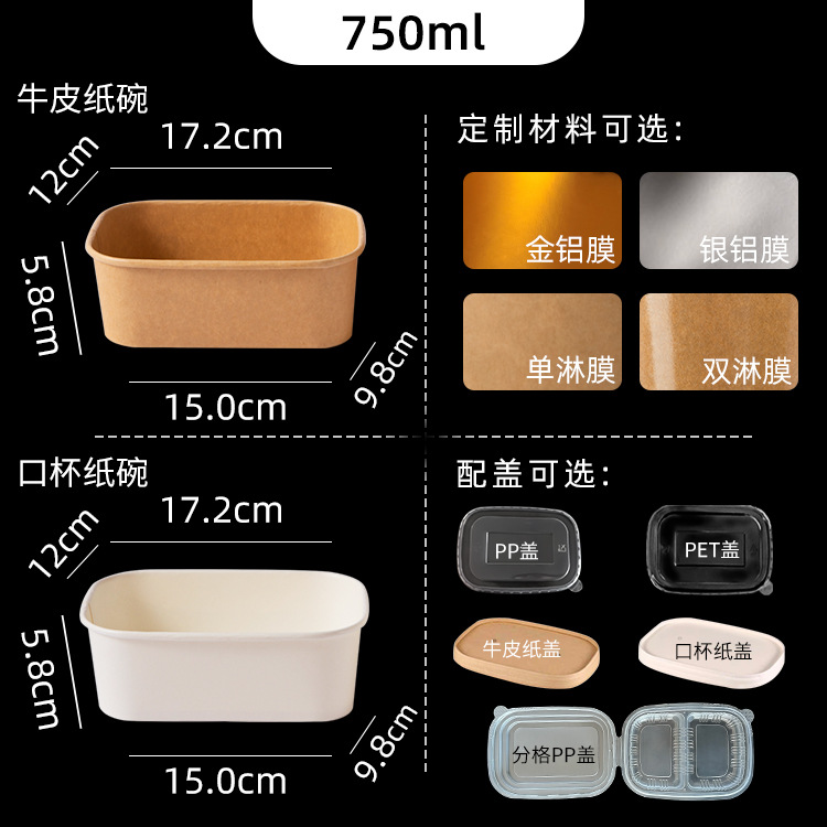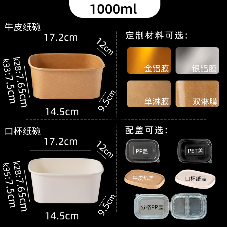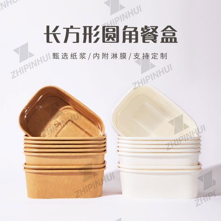 厂家可印刷加厚牛皮纸餐盒长方形圆角外卖打包饭盒快餐一次性纸碗