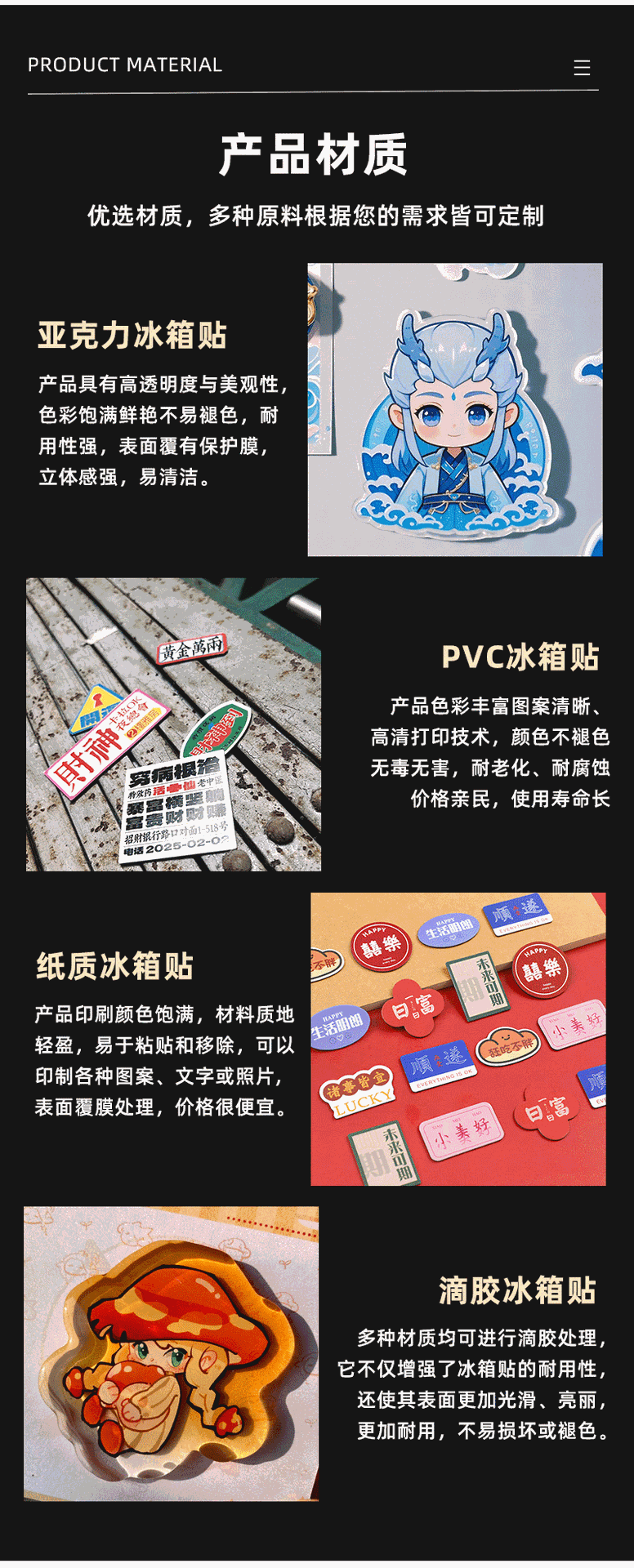 亚克力冰箱贴定制卡通动漫城市文创旅游纪念品纸质软磁冰箱磁吸贴