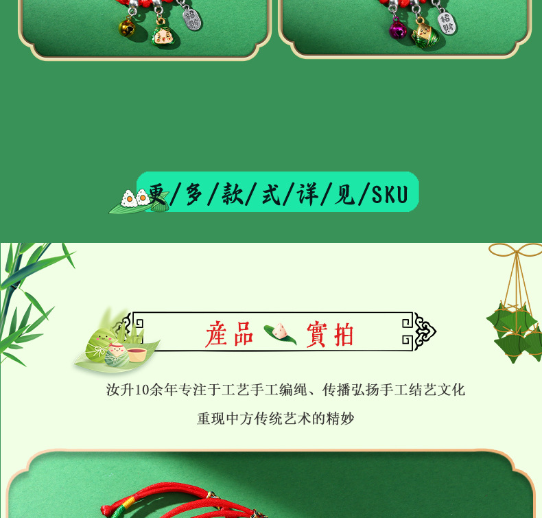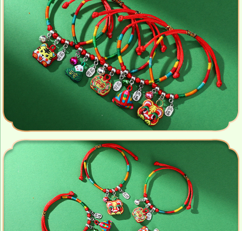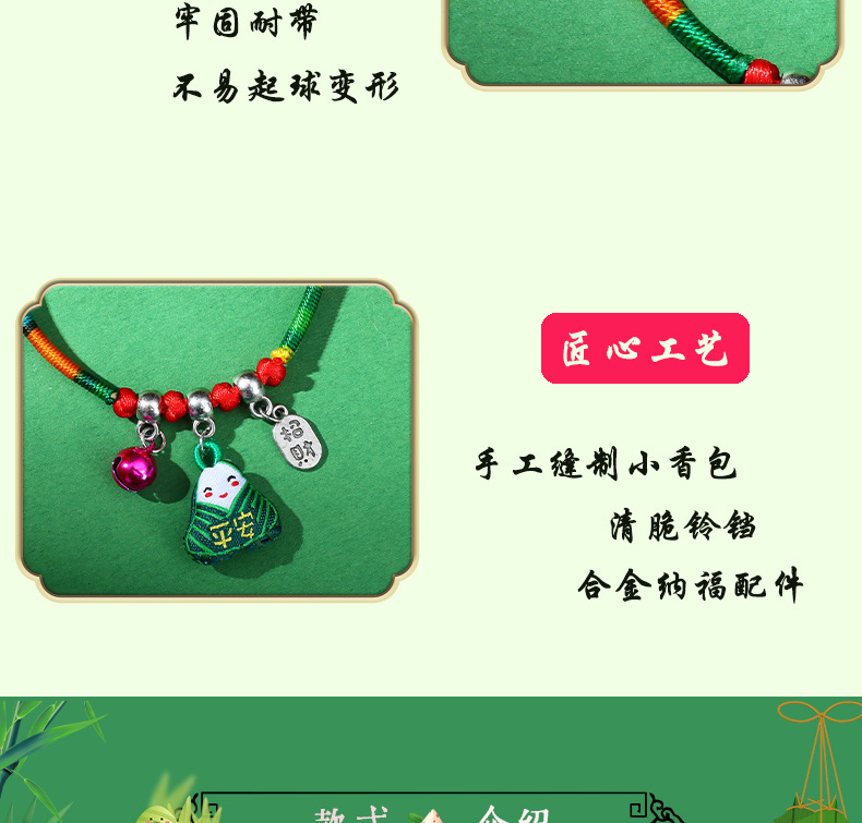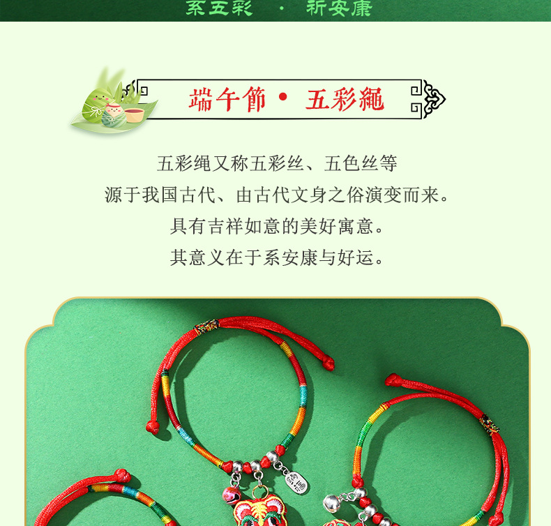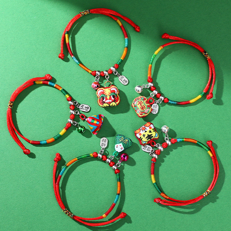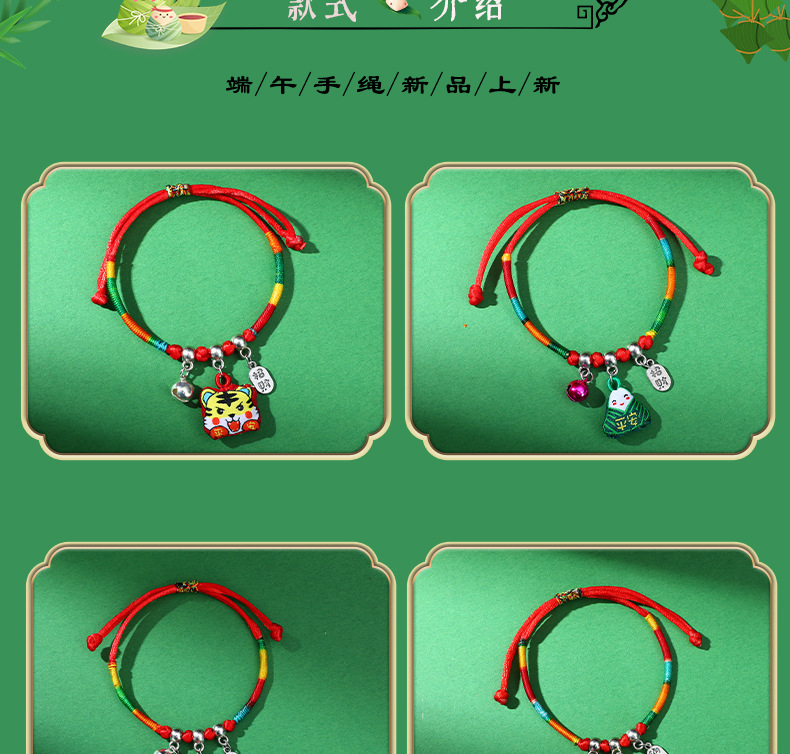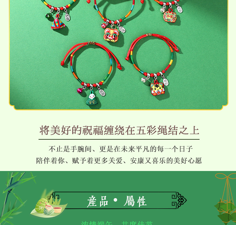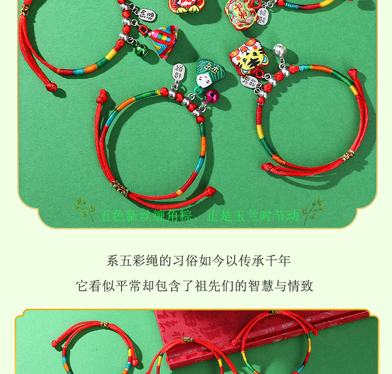 端午节五彩绳手链儿童宝宝纳福小粽子老虎头福袋香包手绳礼品批发