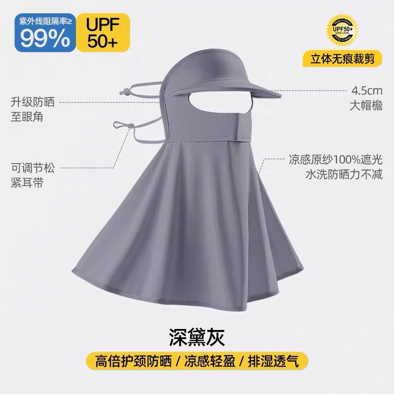 冰丝面罩全脸脸罩防紫外线骑行透气遮阳百搭大帽檐脸基尼防晒口罩