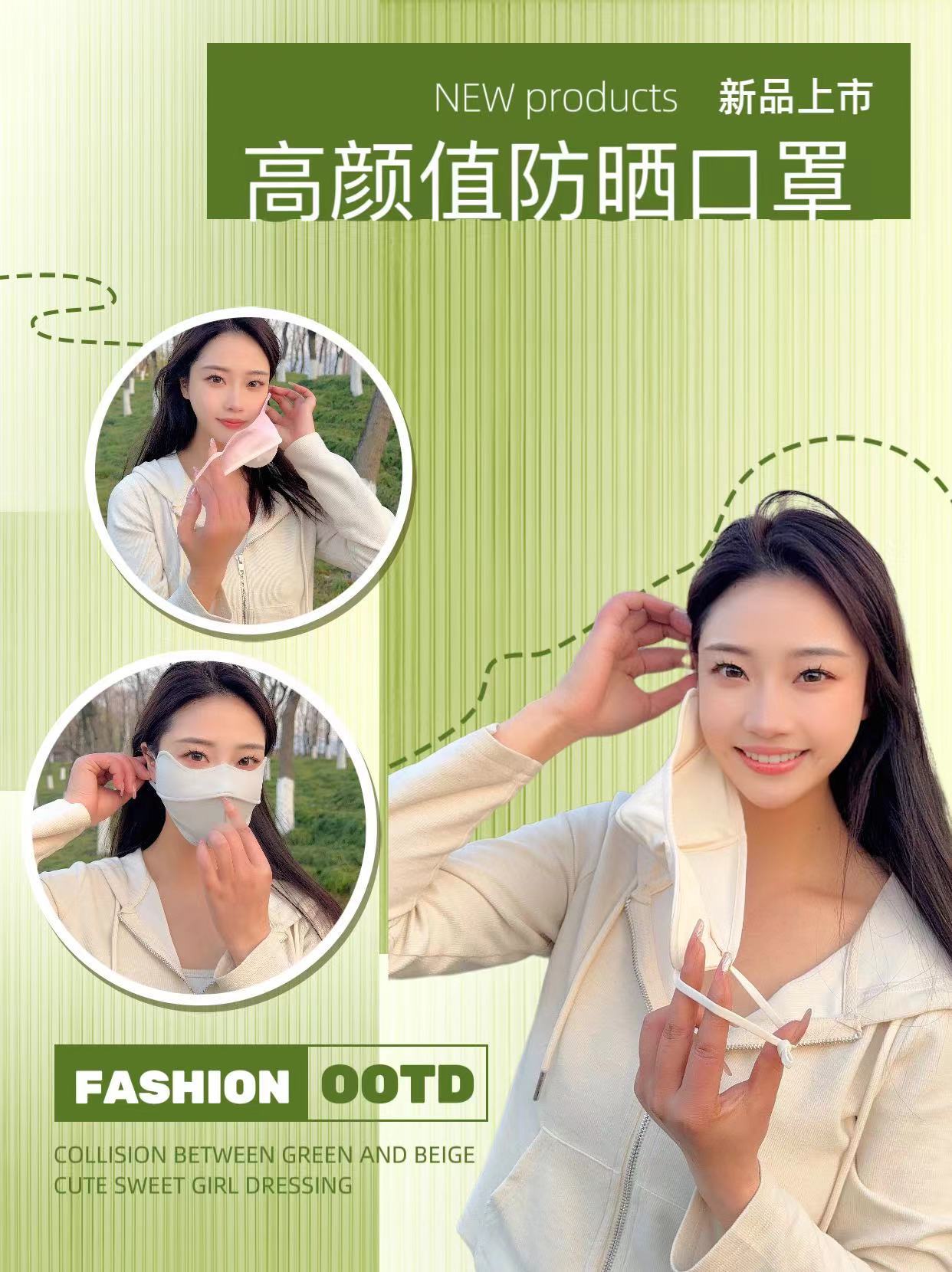 冰丝防晒口罩女护眼角透气夏季防紫外线遮阳脸罩upf50+挂耳款面罩