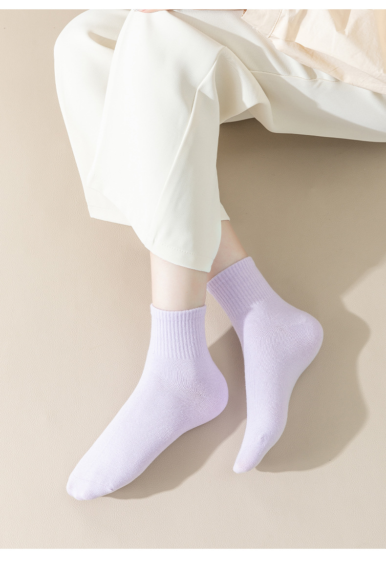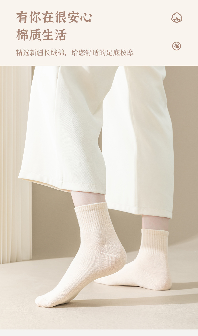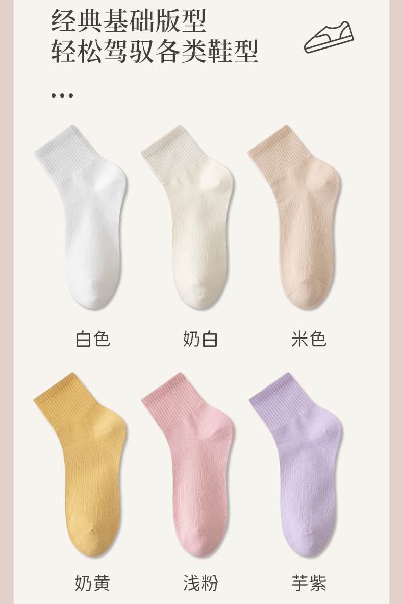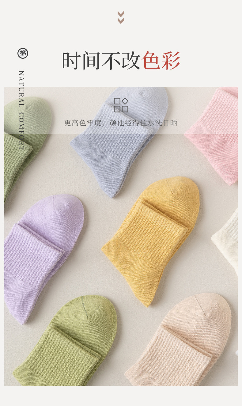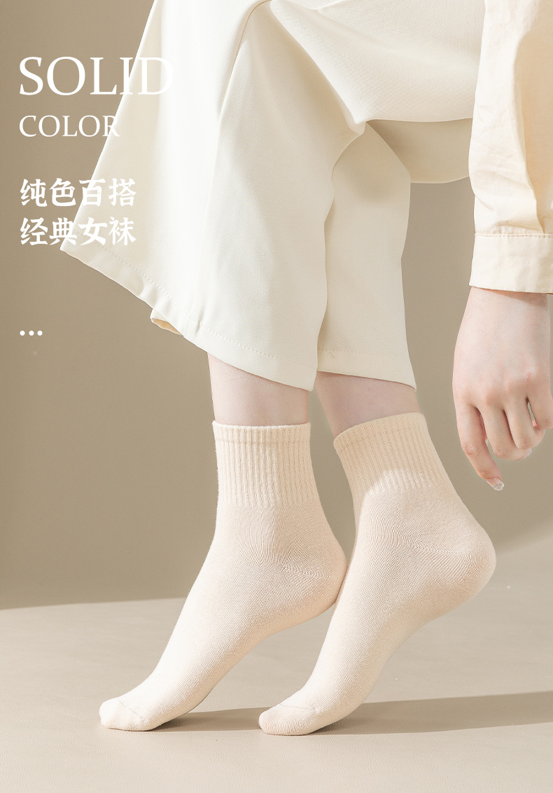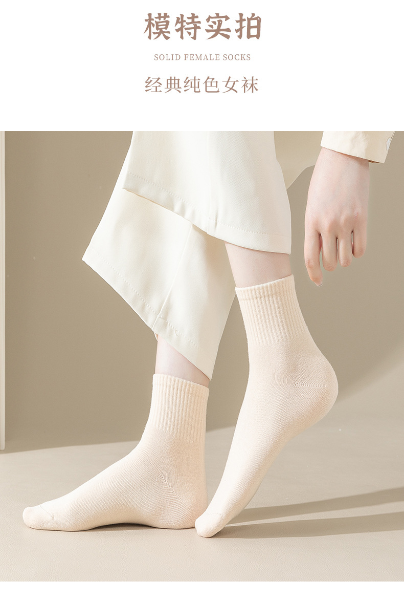 袜子纯棉女春夏中筒袜纯色防臭吸汗运动袜抗起球棉袜诸暨袜业批发