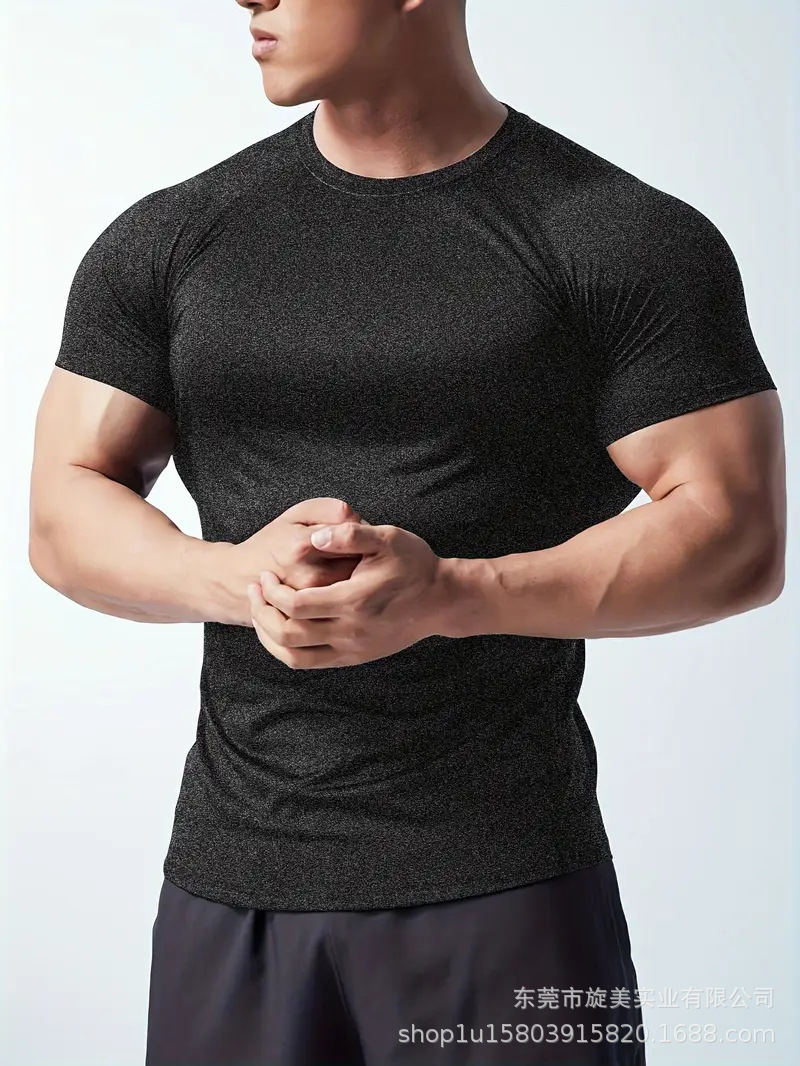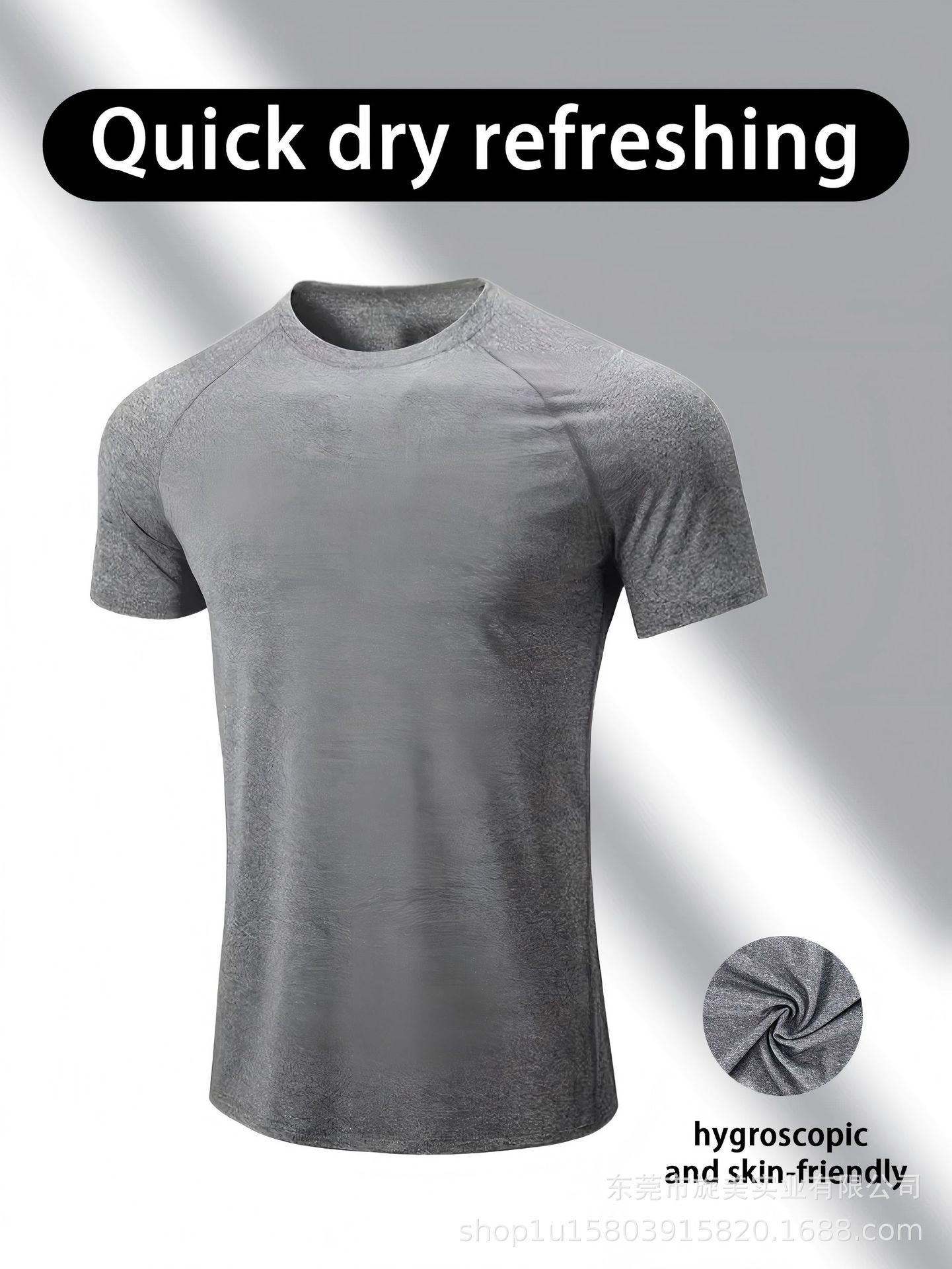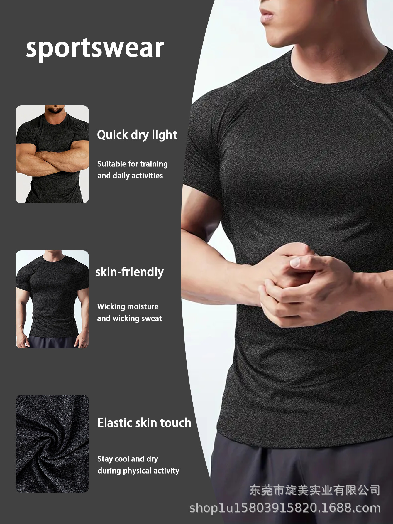 跨境欧美尺码现货运动阳离子紧身拉伸休闲速干跑步圆领短袖上衣T
