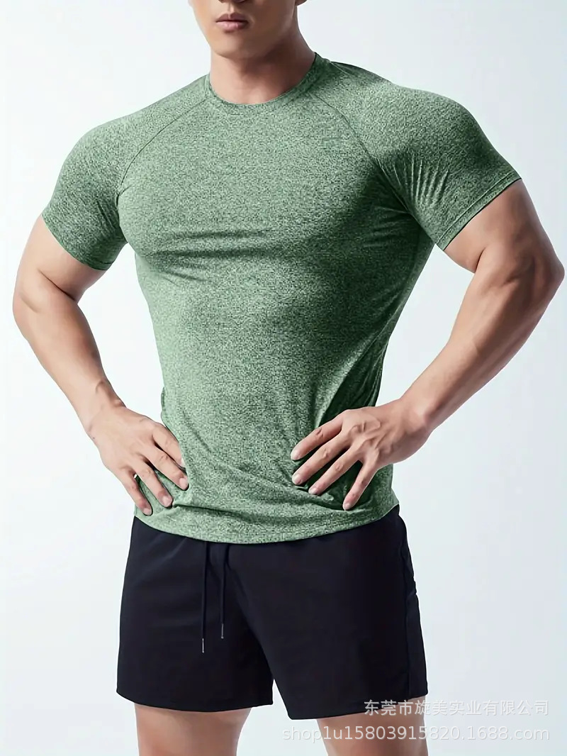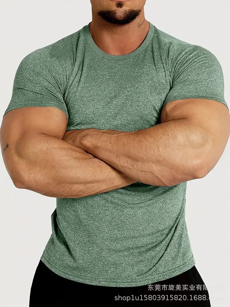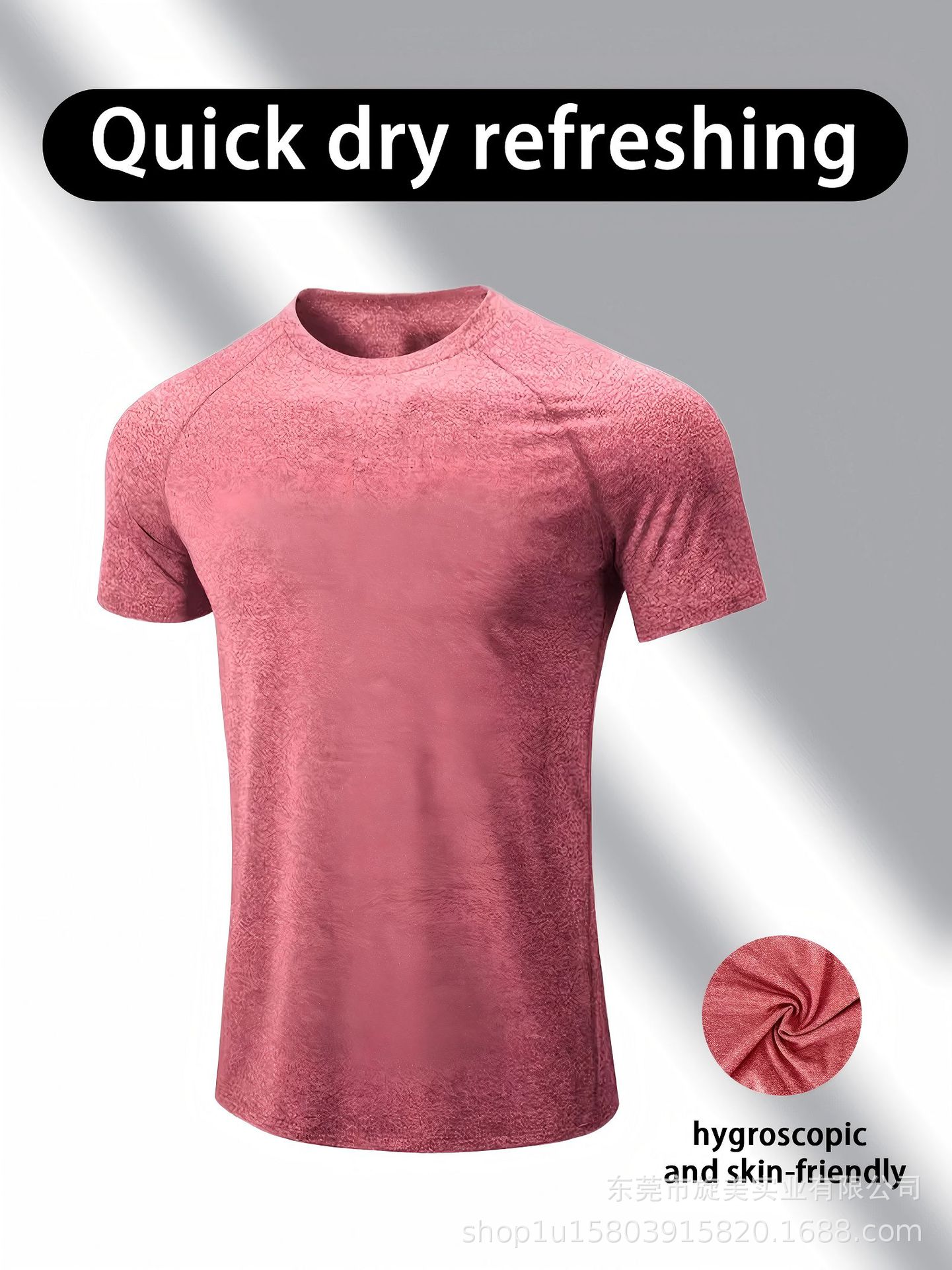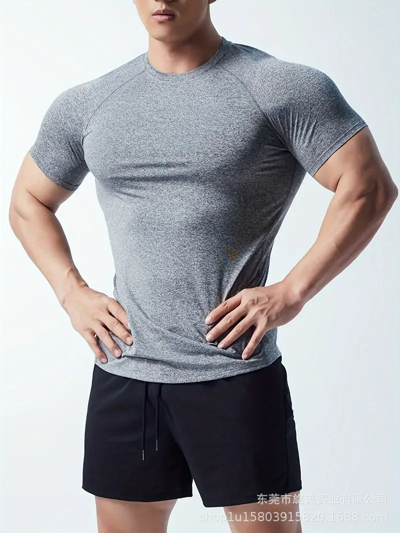 跨境欧美尺码现货运动阳离子紧身拉伸休闲速干跑步圆领短袖上衣T