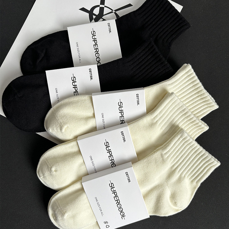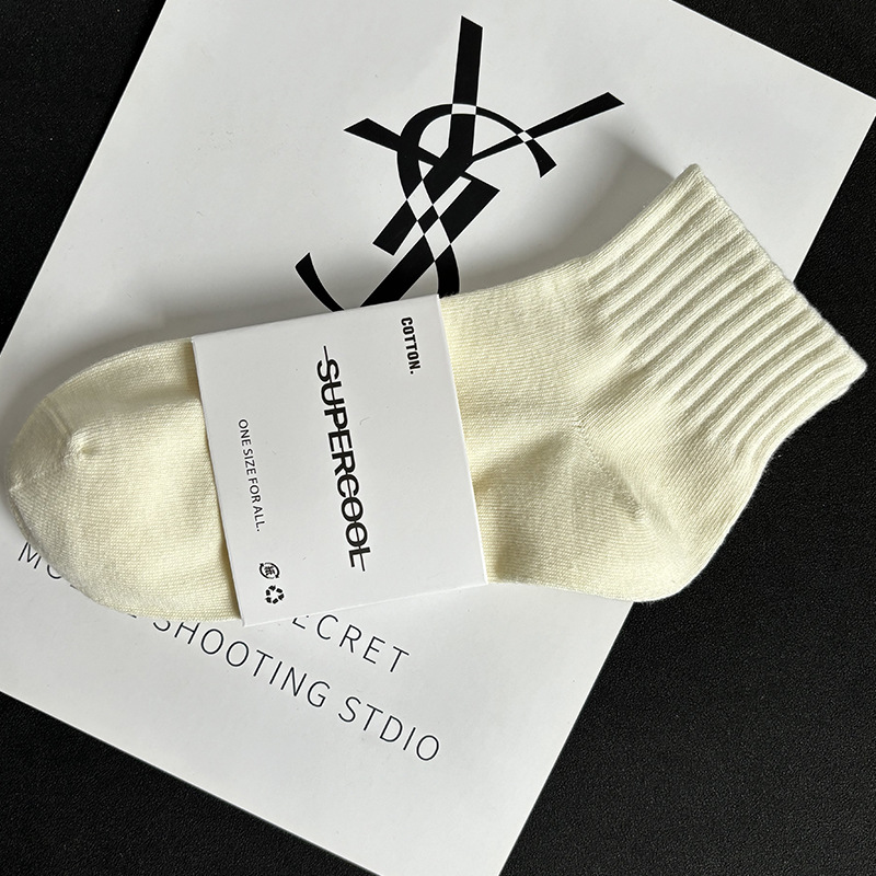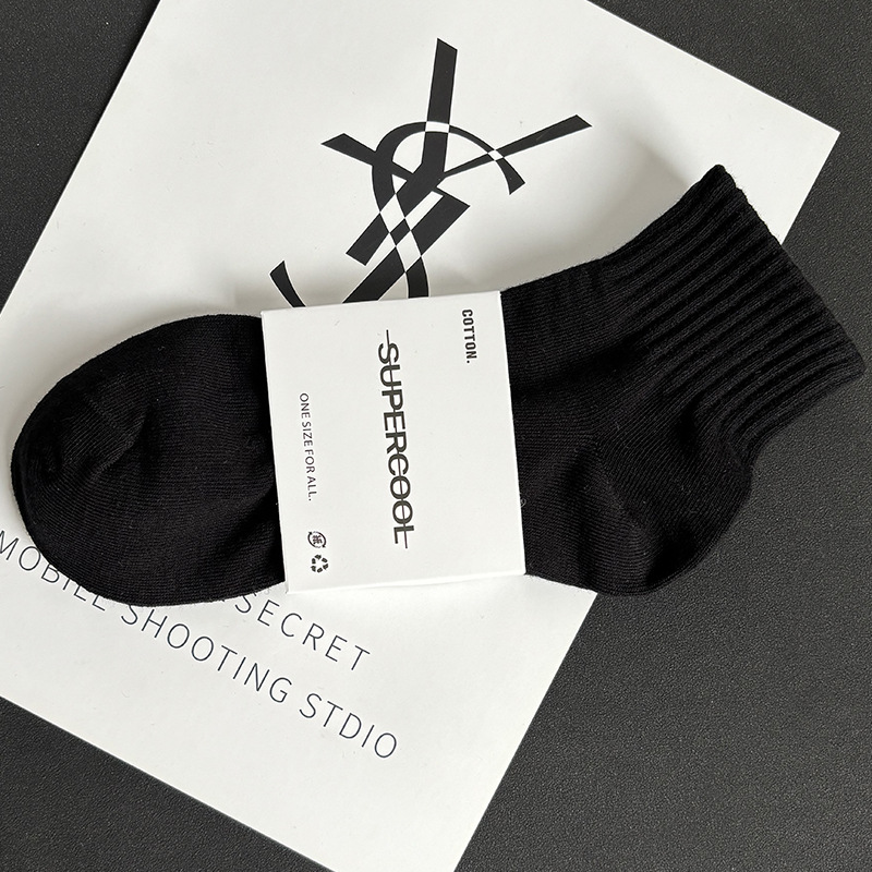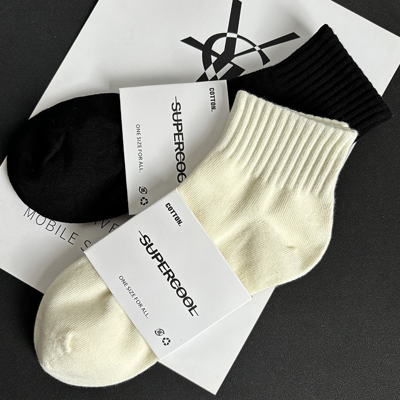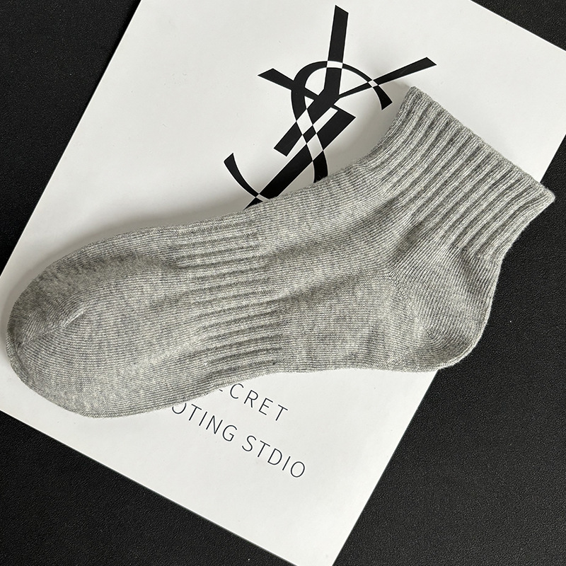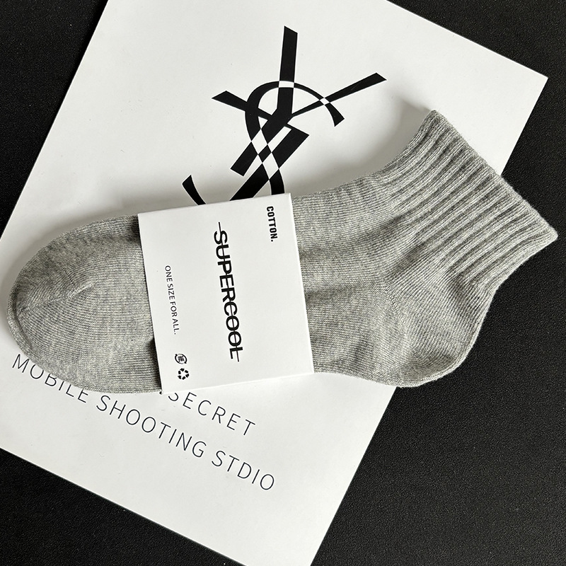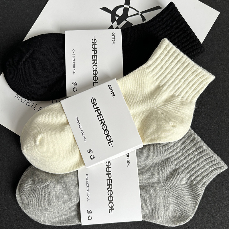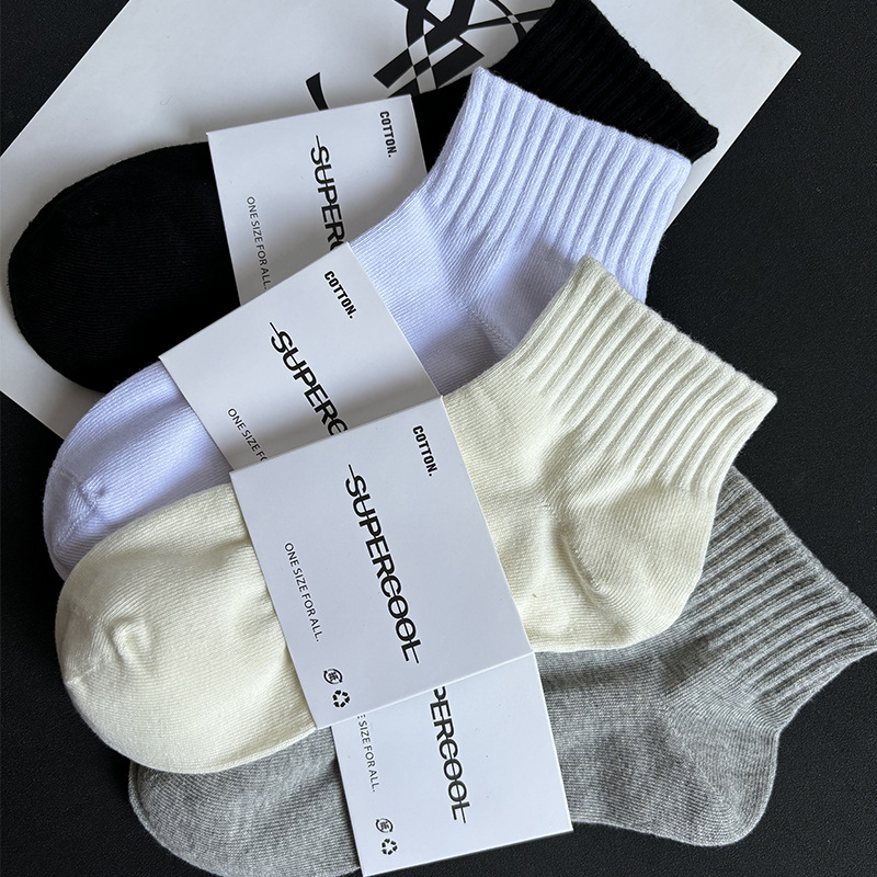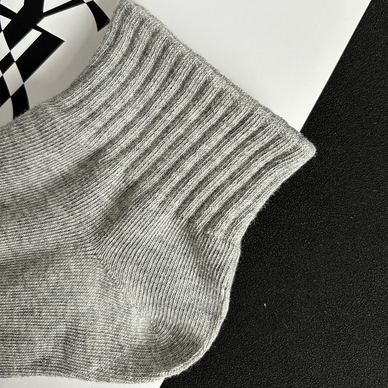 袜子短袜男夏季薄款黑白灰纯色棉防臭透气运动中筒袜女袜男生短筒