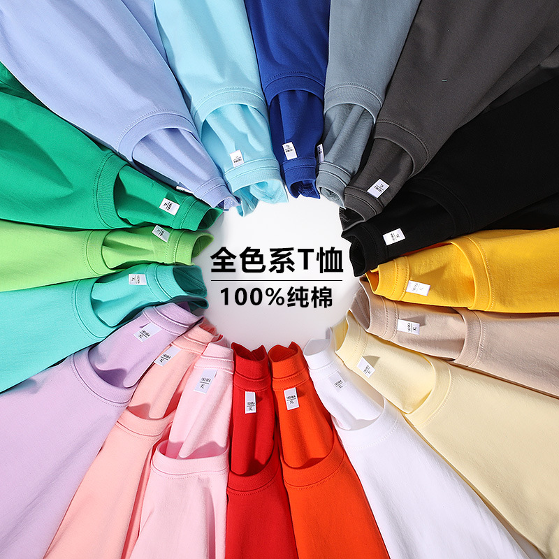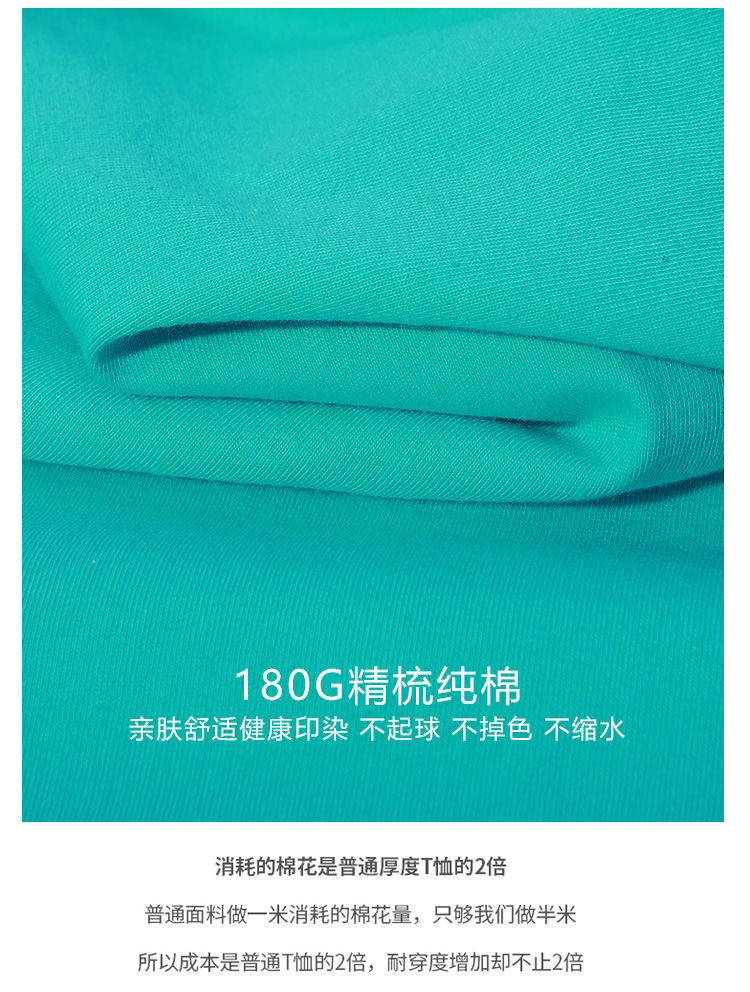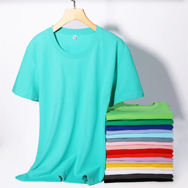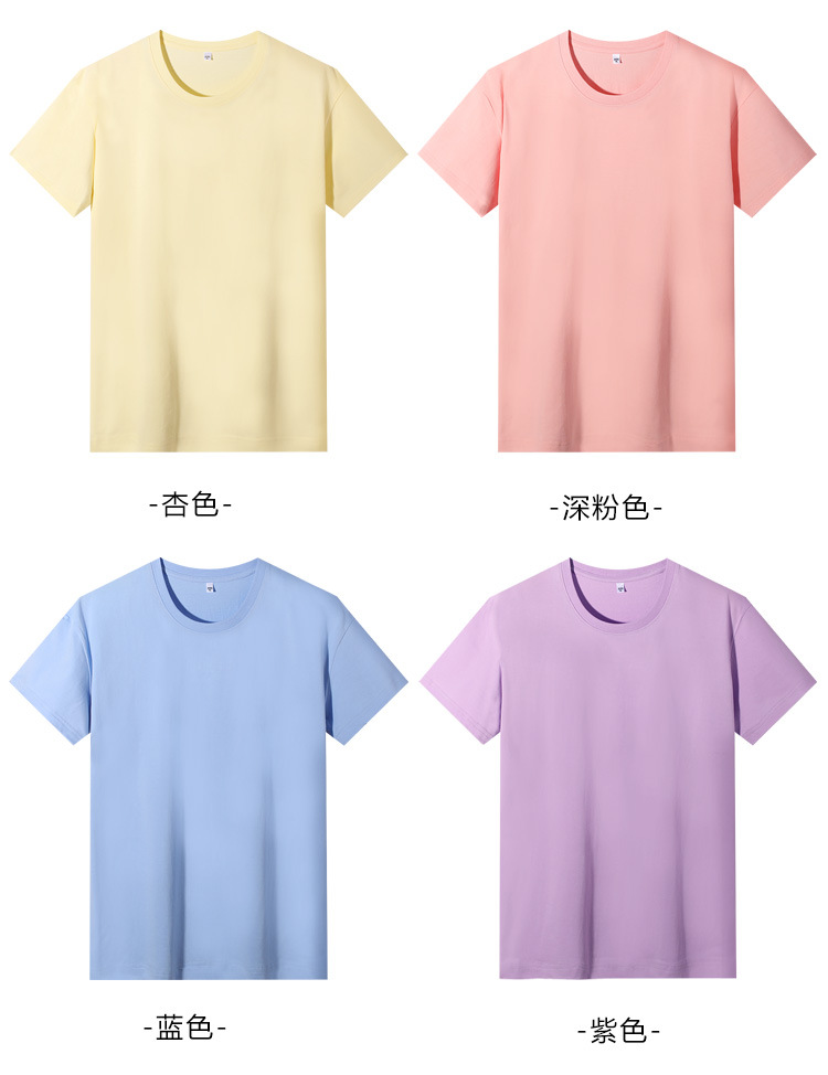 夏季180克精梳纯棉圆领T恤男女同款正肩光板短袖可印logo广告衫