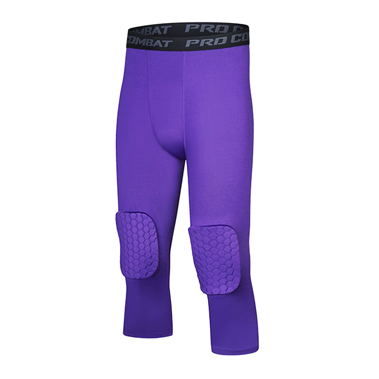 蜂窝防撞带护腿七分裤健身跑步篮球高弹打底裤高弹防撞运动紧身裤