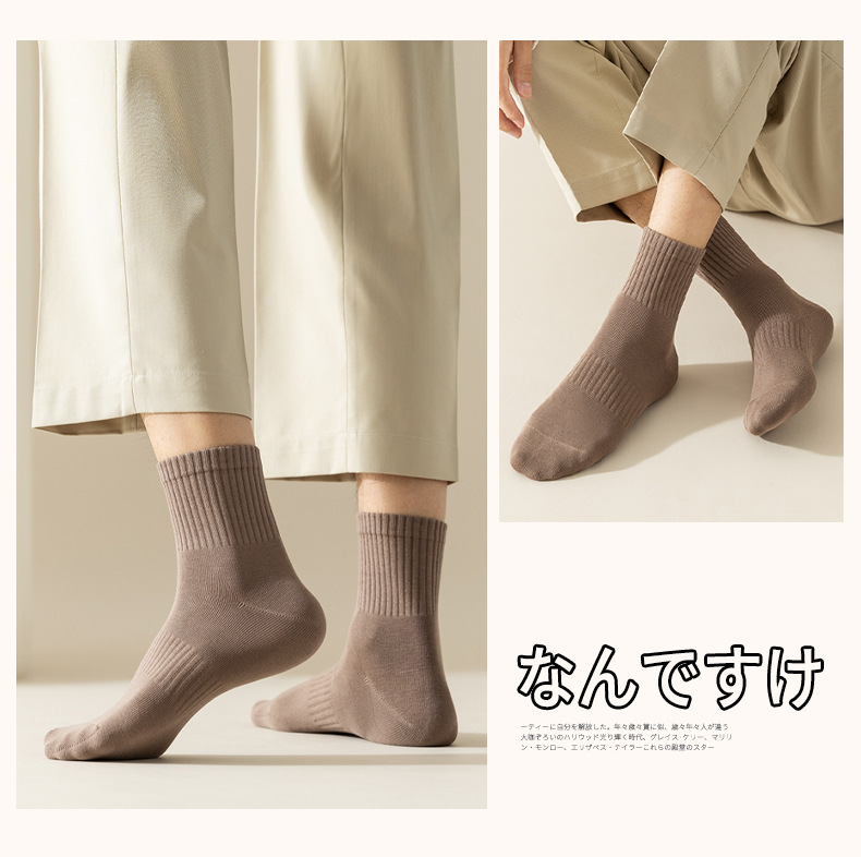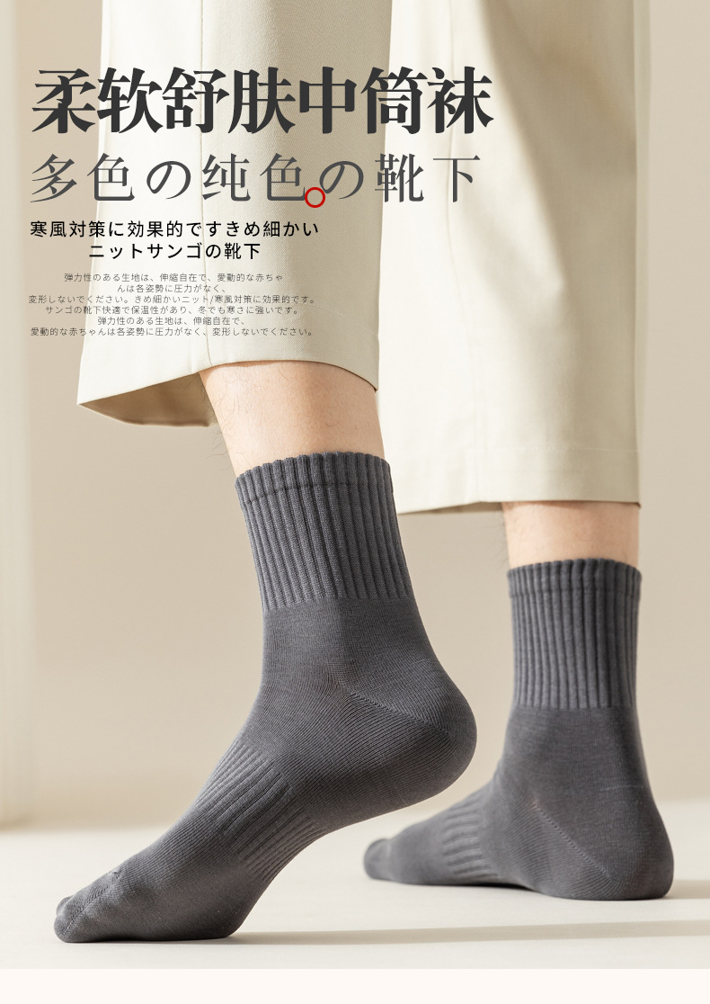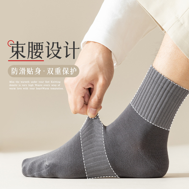 男袜中筒袜子纯色休闲百搭2025新款中筒袜吸汗透气防臭男士商务袜