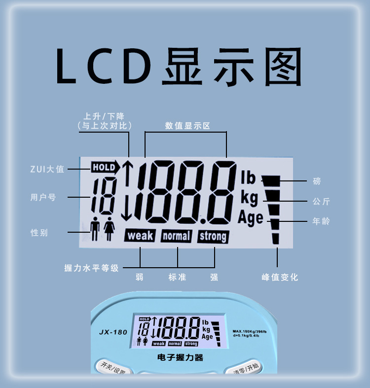 香山电子握力计测试握力器中考医院体育外贸跨境健身测量握力专用