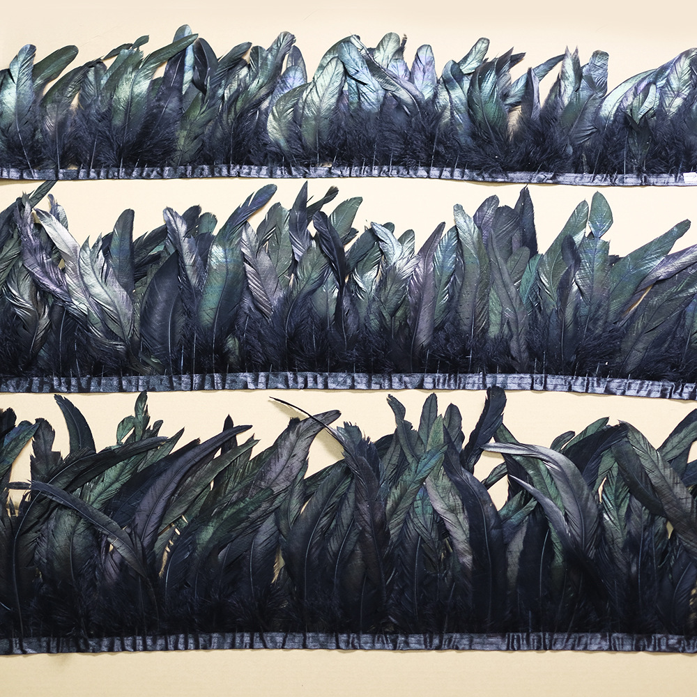 黑色鸡毛布边服装辅料装饰羽毛布边裙边鸡尾毛羽毛布带