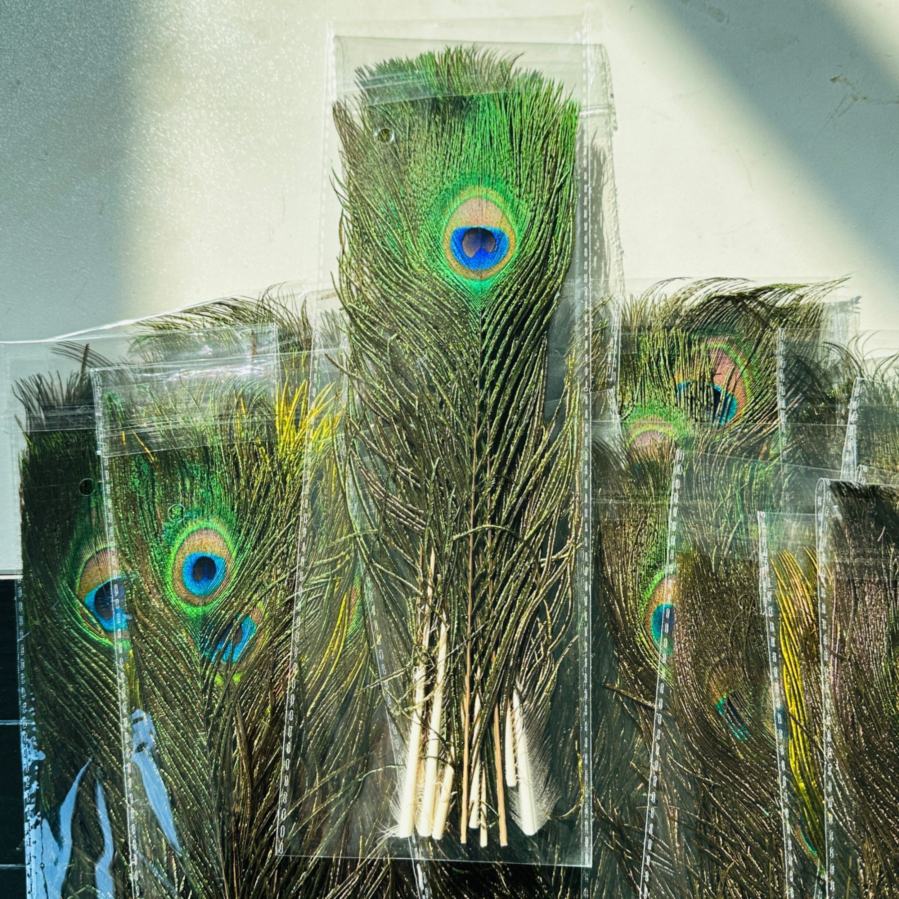 厂家直销跨境批发25-70厘米孔雀毛真羽毛手工DIY材料家居饰品摆件