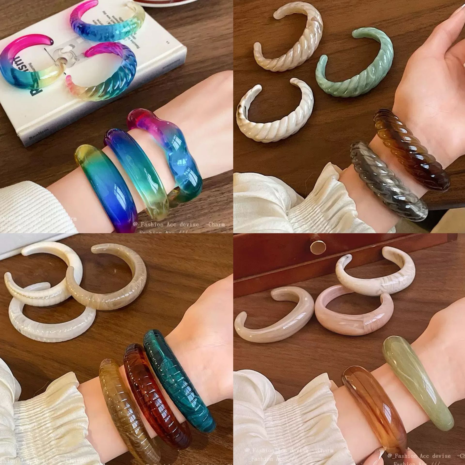 手镯不规则几何型花纹晕染树脂手环跨境夸张手饰彩色树脂开口手镯