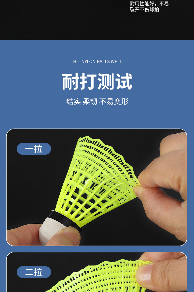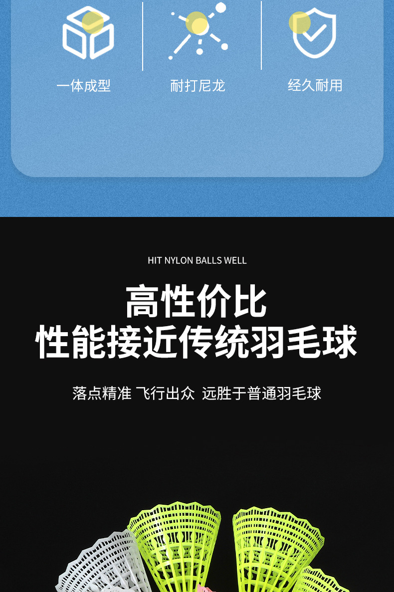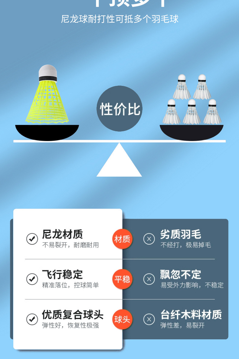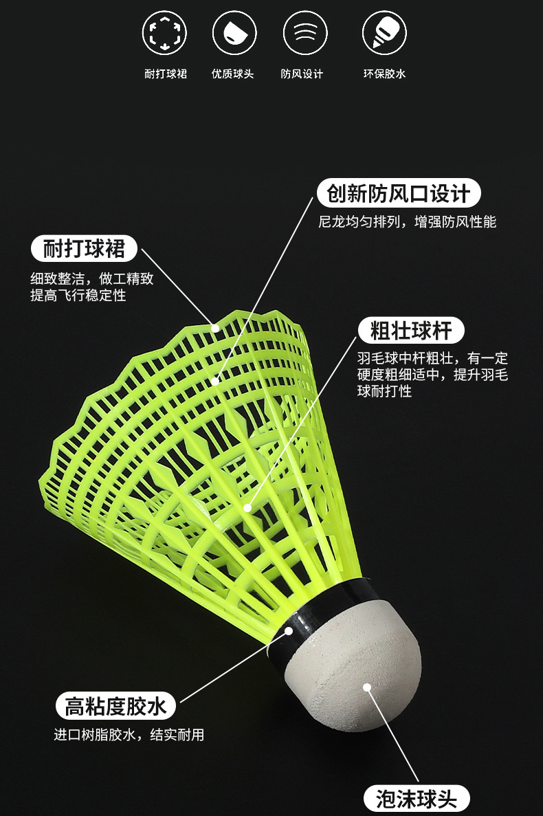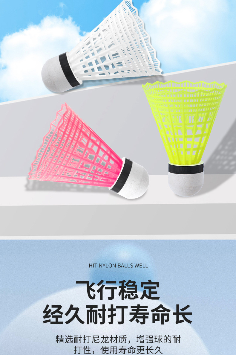 批发塑料尼龙球羽毛球耐打训练球高弹不易打烂散装白色黄色可选色
