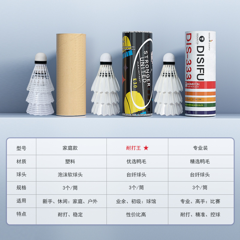 佑游羽毛球3只装耐打室内外防风打不烂塑料尼龙球王专业训练用球