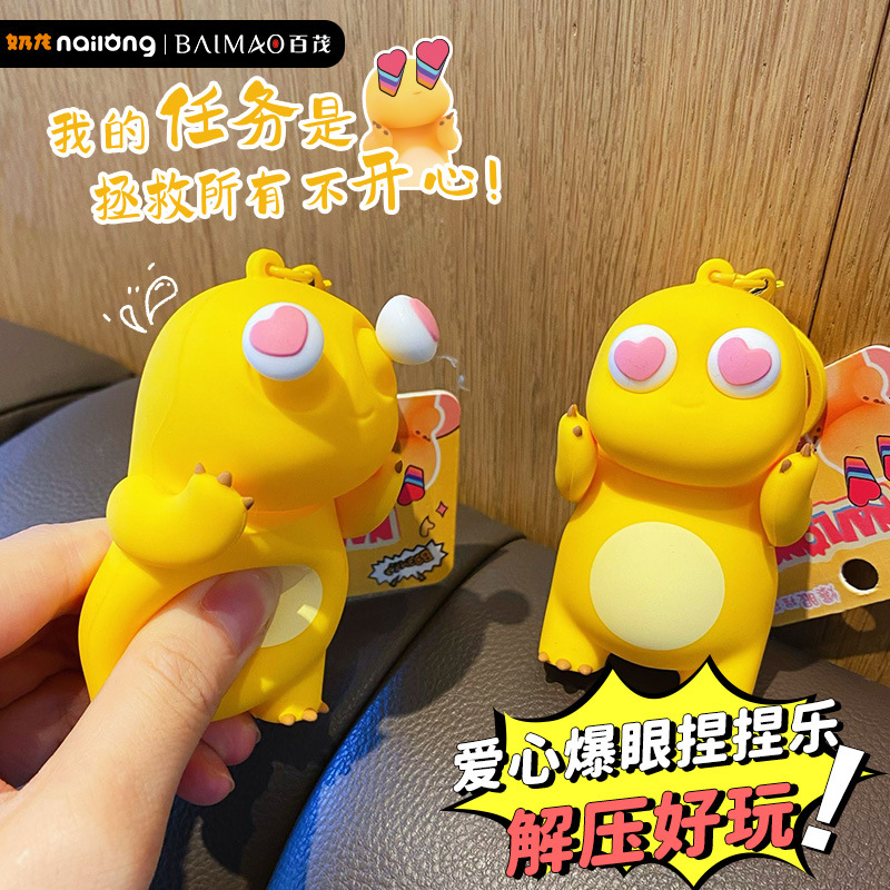 正版奶龙爱心爆眼捏捏乐钥匙扣女可爱卡通解压玩偶公仔钥匙链挂件