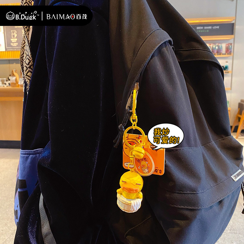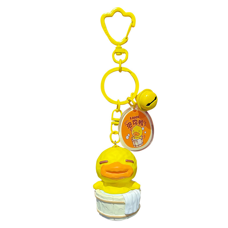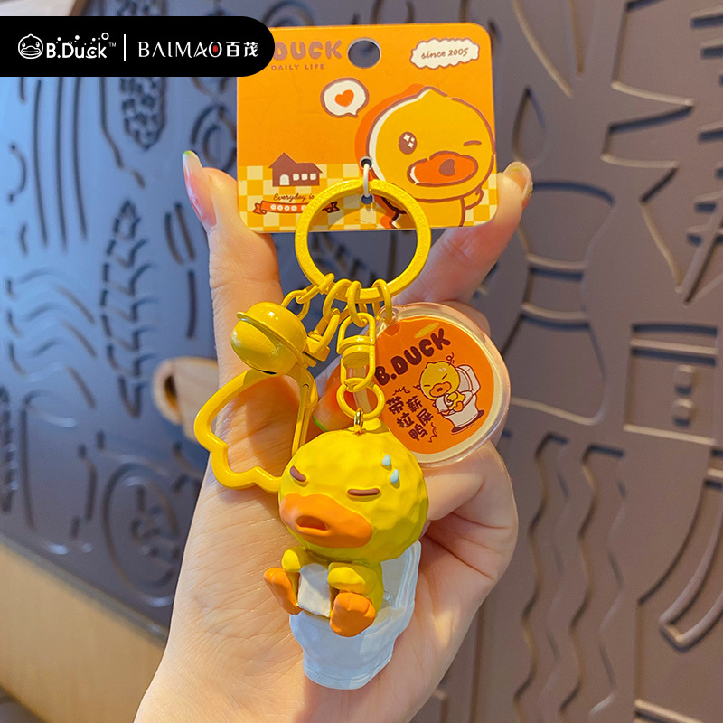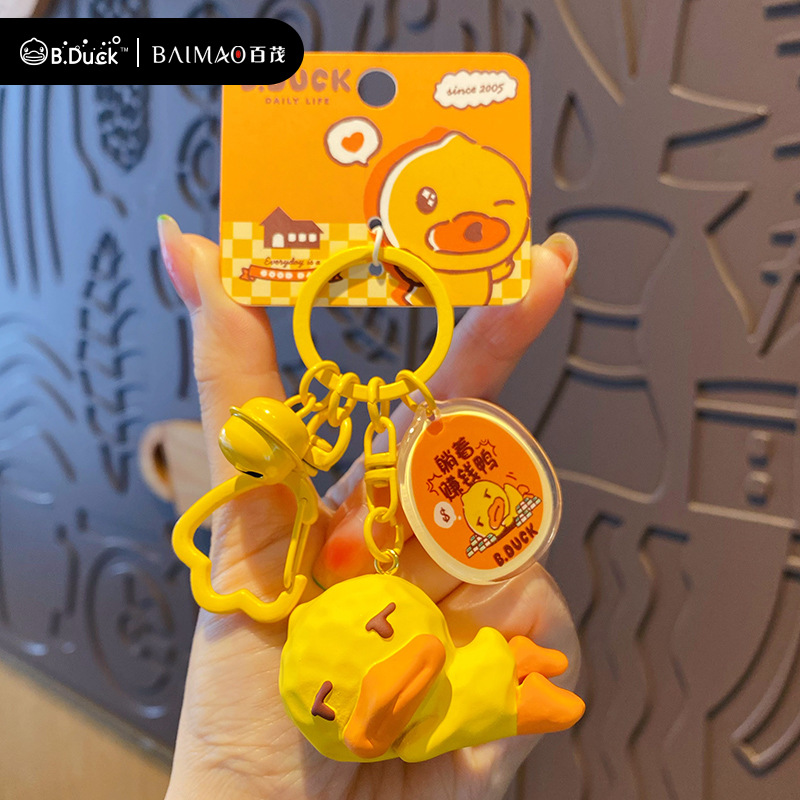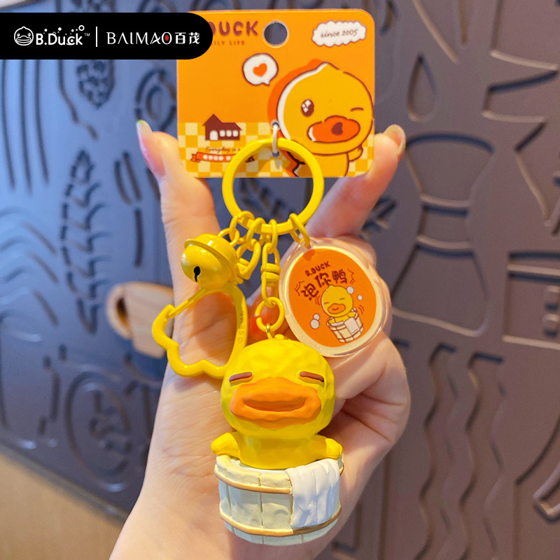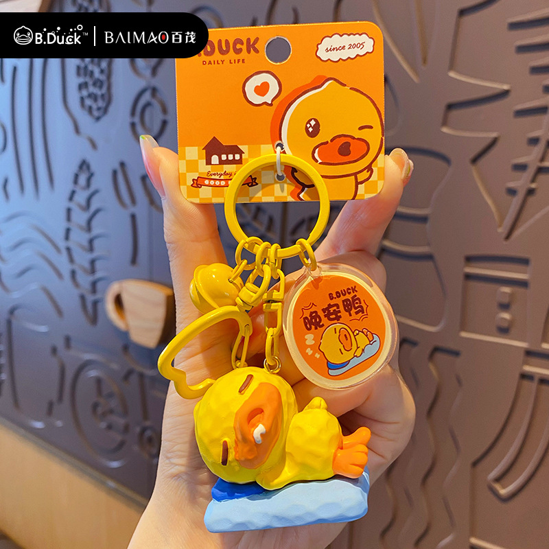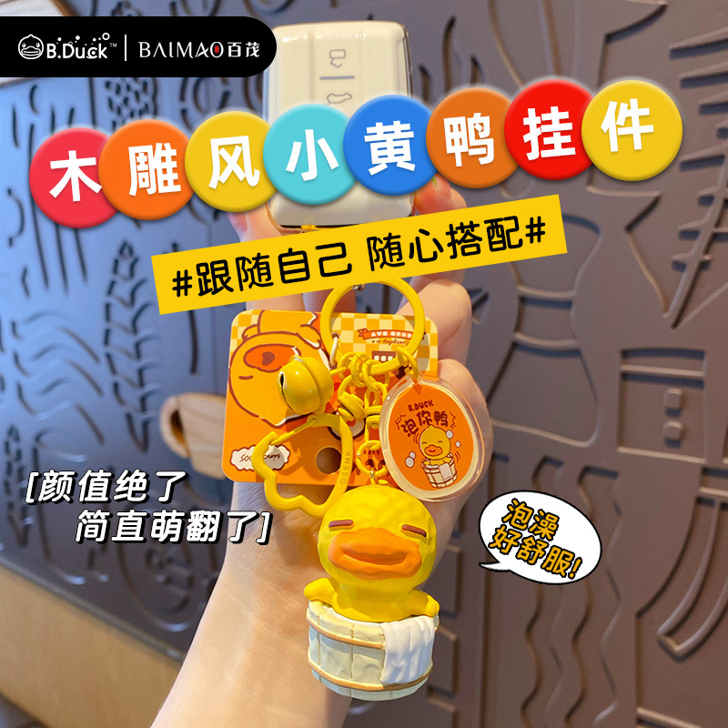 正版木雕风B.Duck小黄鸭钥匙扣创意精致树脂鸭鸭公仔钥匙链包挂件
