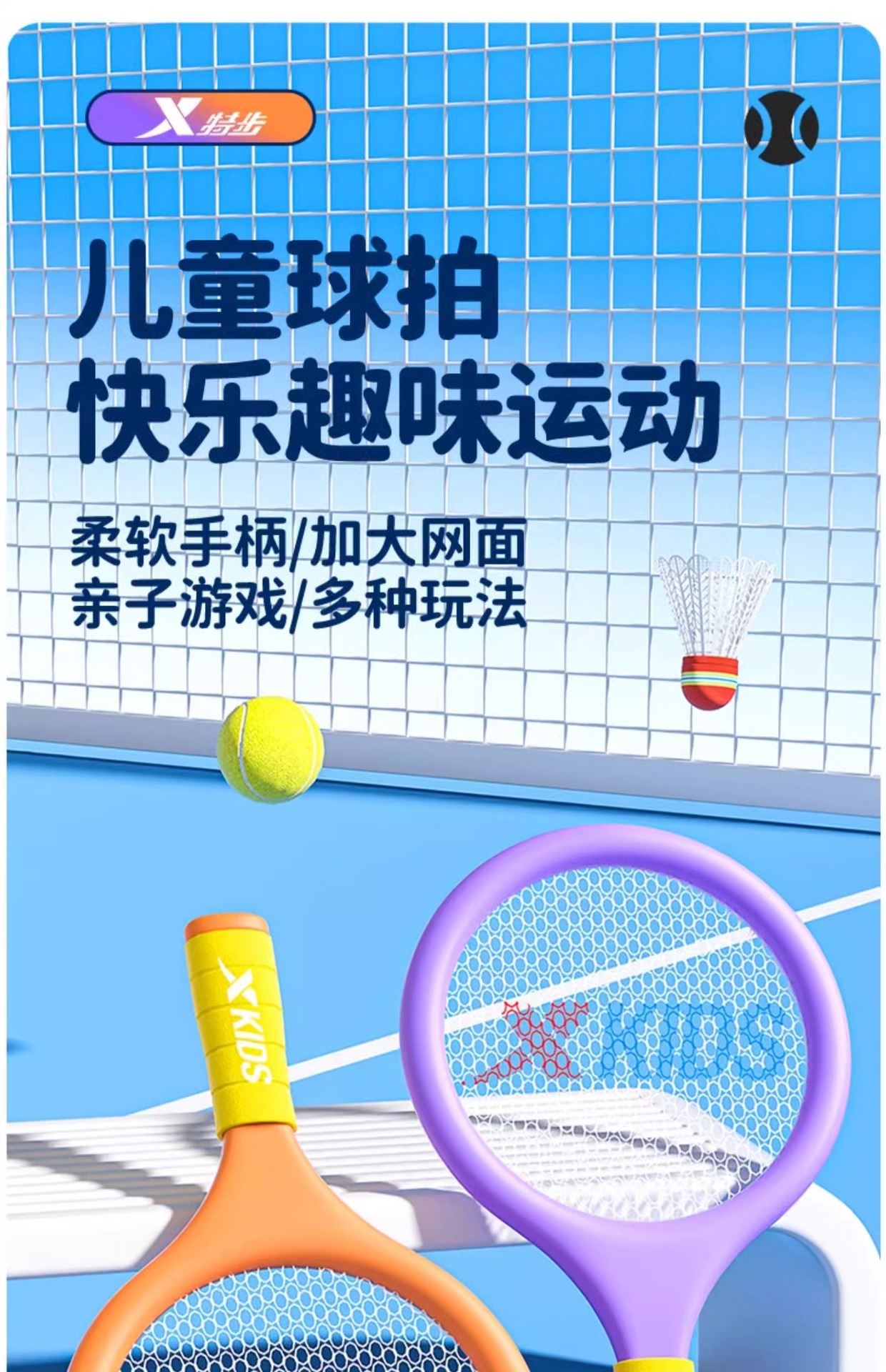 特步亲子网球羽毛球拍益智玩具男女孩3-5岁儿童户外运动训练器