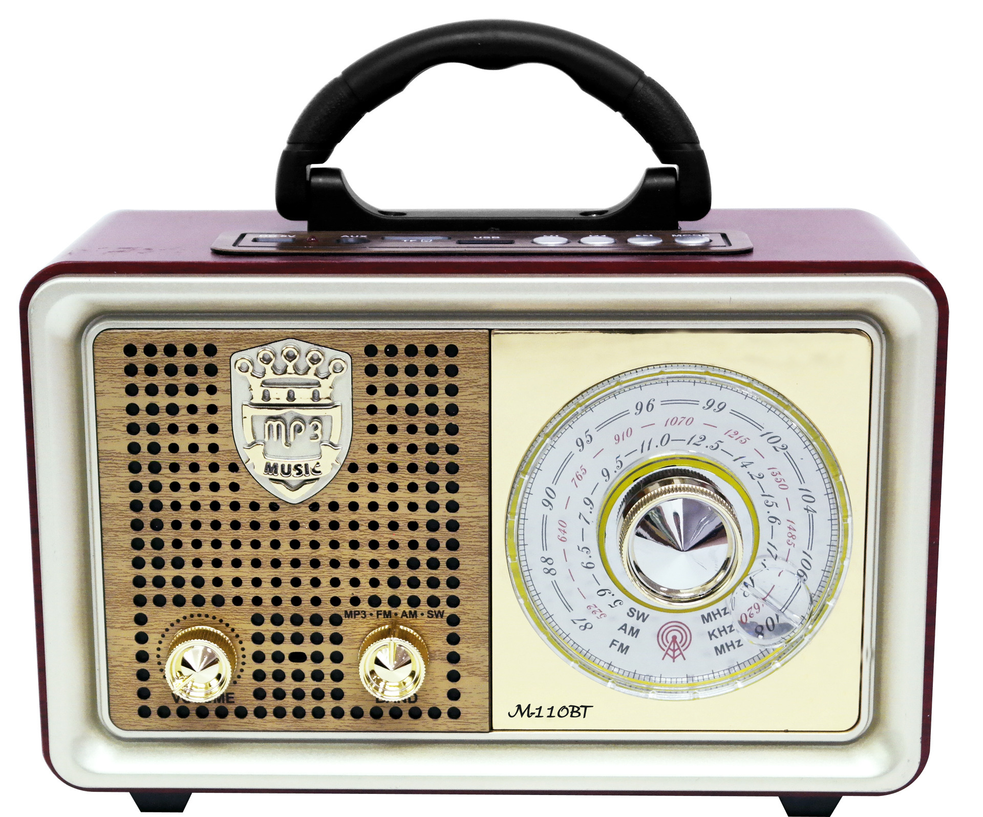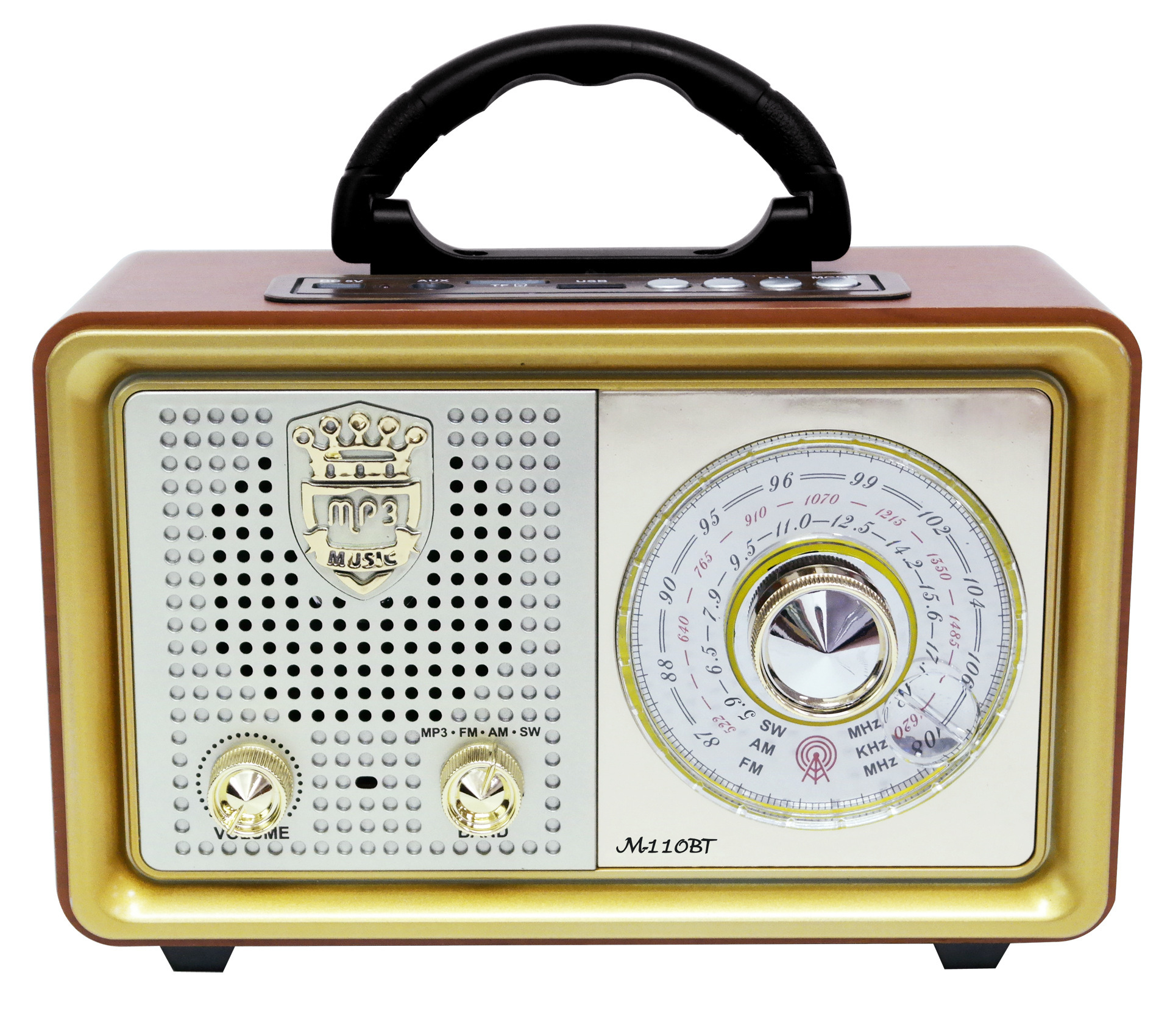 M-110BT 木质复古蓝牙音箱老年人便携插卡收音机老式小音响半导体