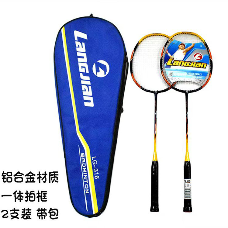 浪尖羽毛球拍 2支装送包套装儿童成人训练耐打情侣款铁合金羽毛拍