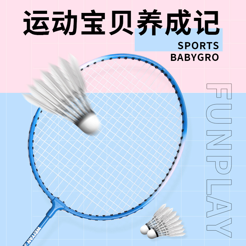 儿童羽毛球拍2支套装学生儿童中大童耐打铁合金初学双拍亲子互动