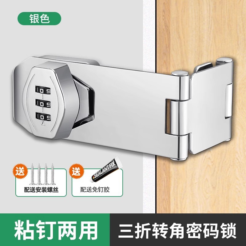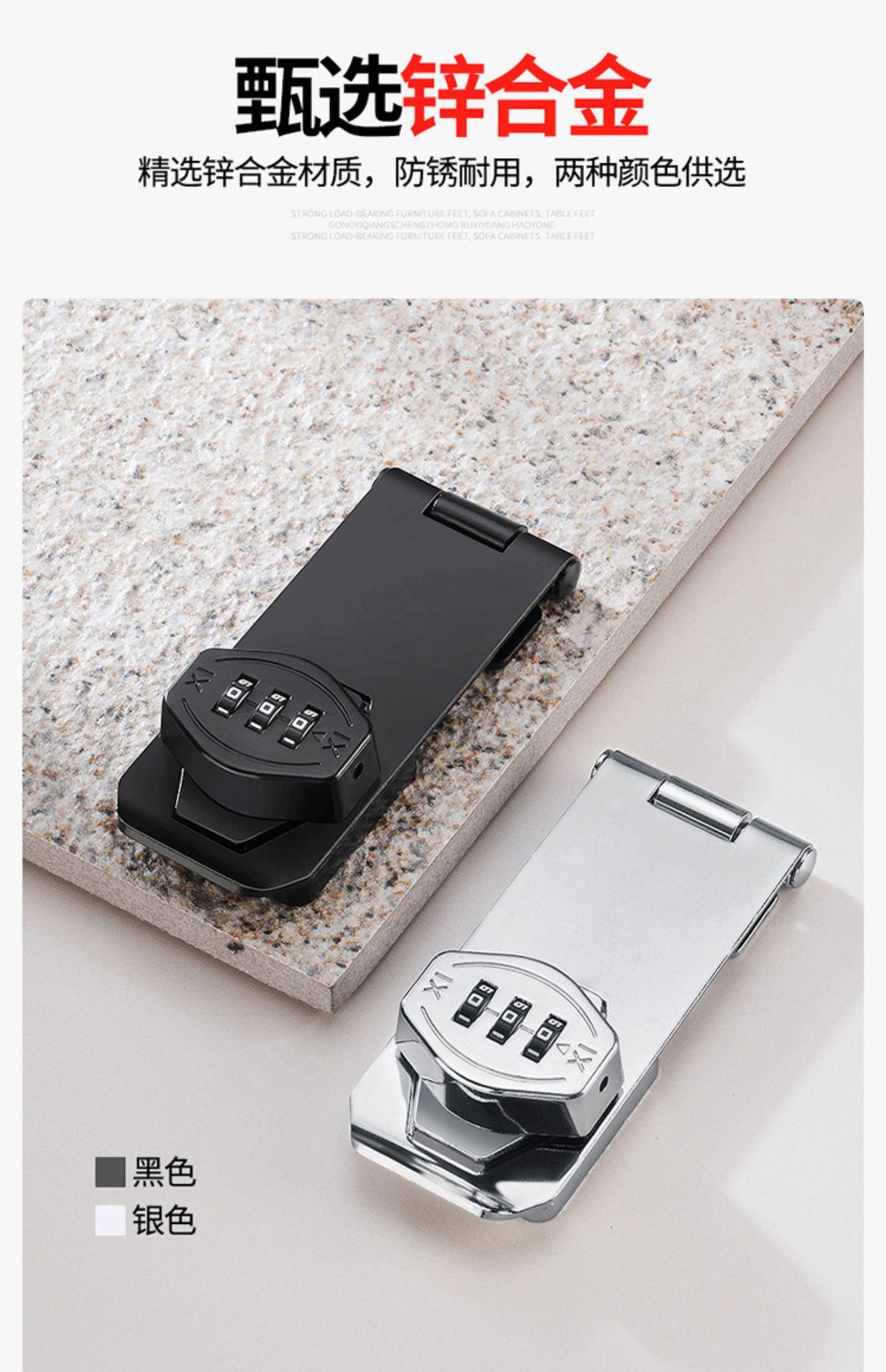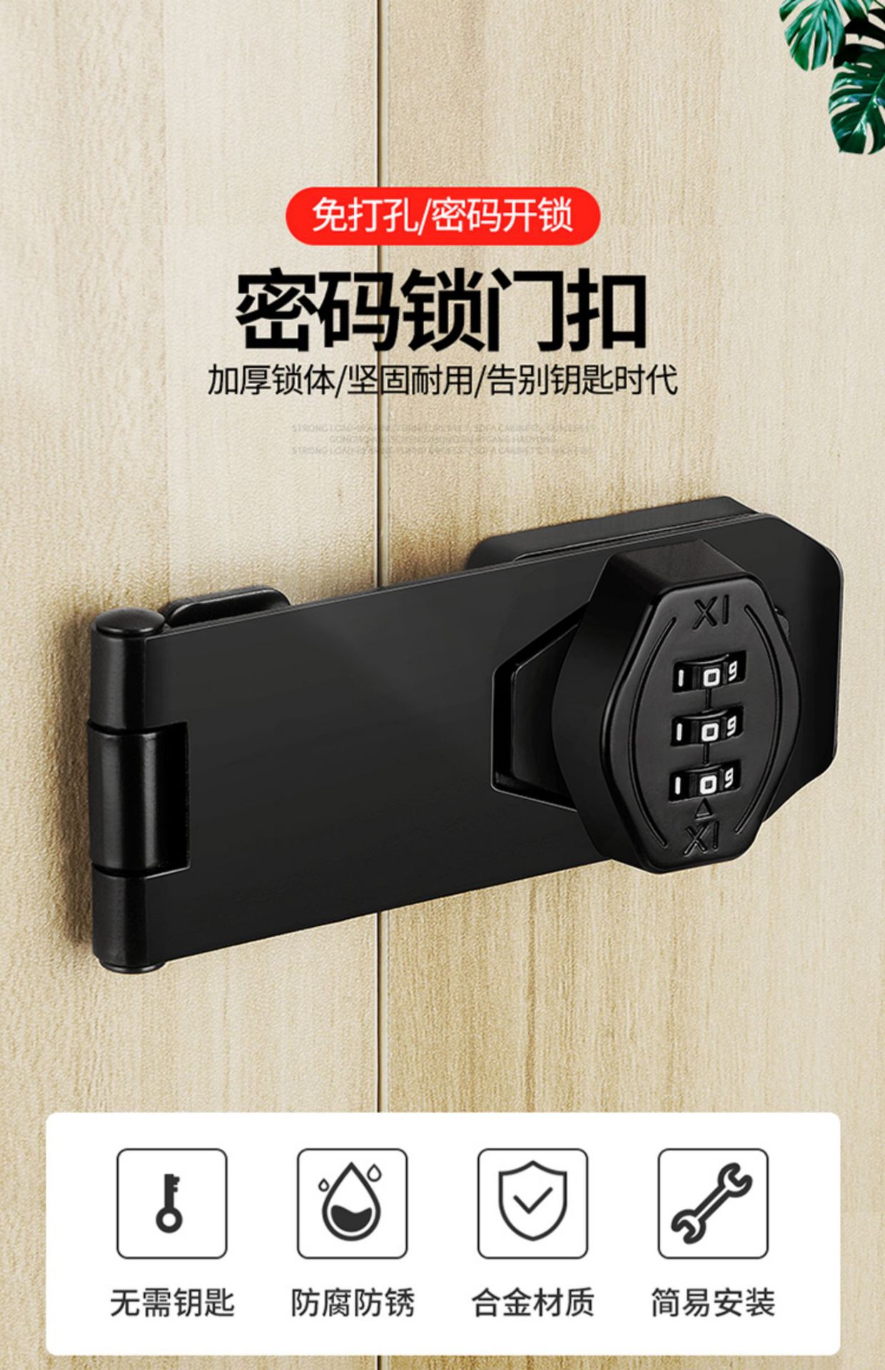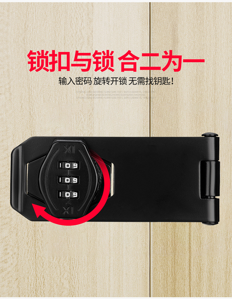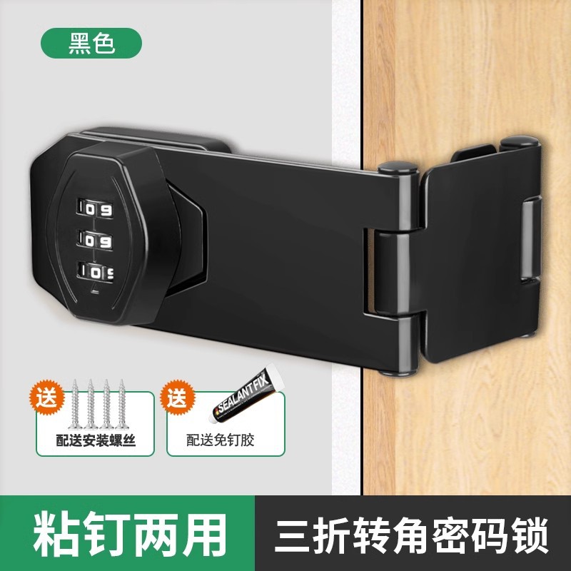 柜门密码锁免打孔冰箱锁防盗抽屉锁双开柜子锁铁皮文件柜锁扣锁具