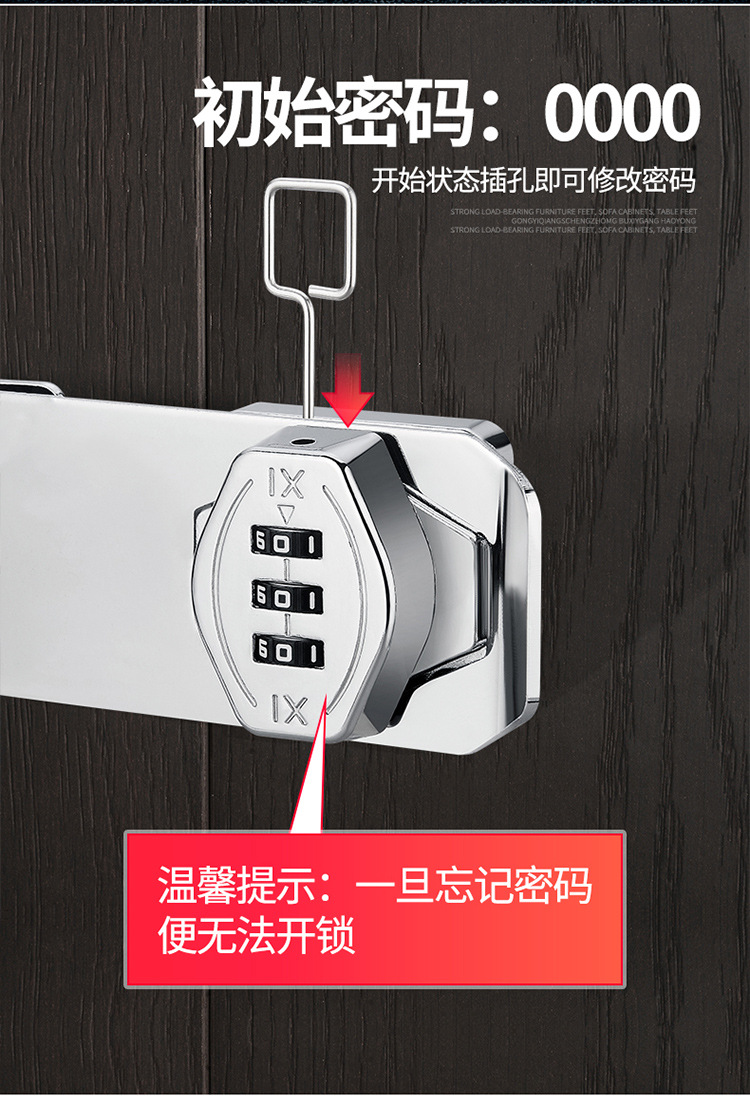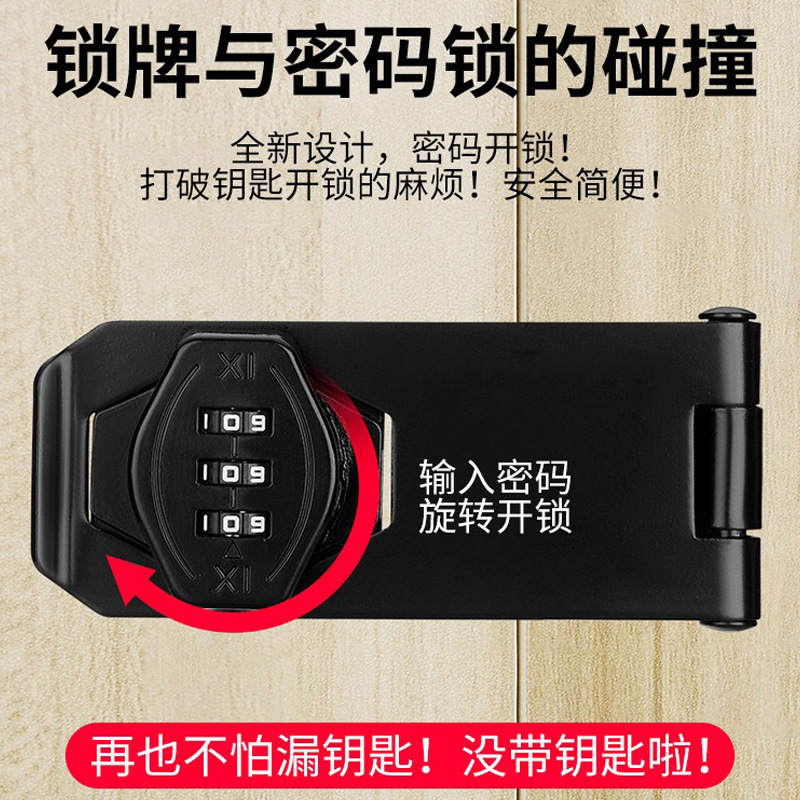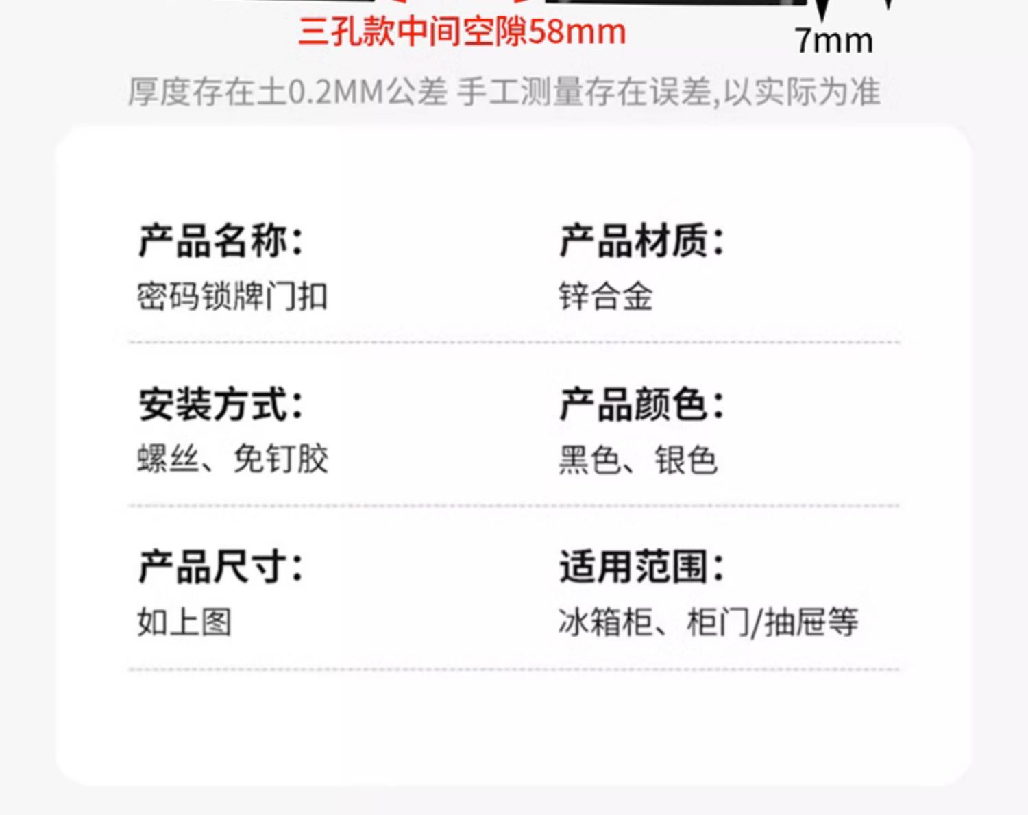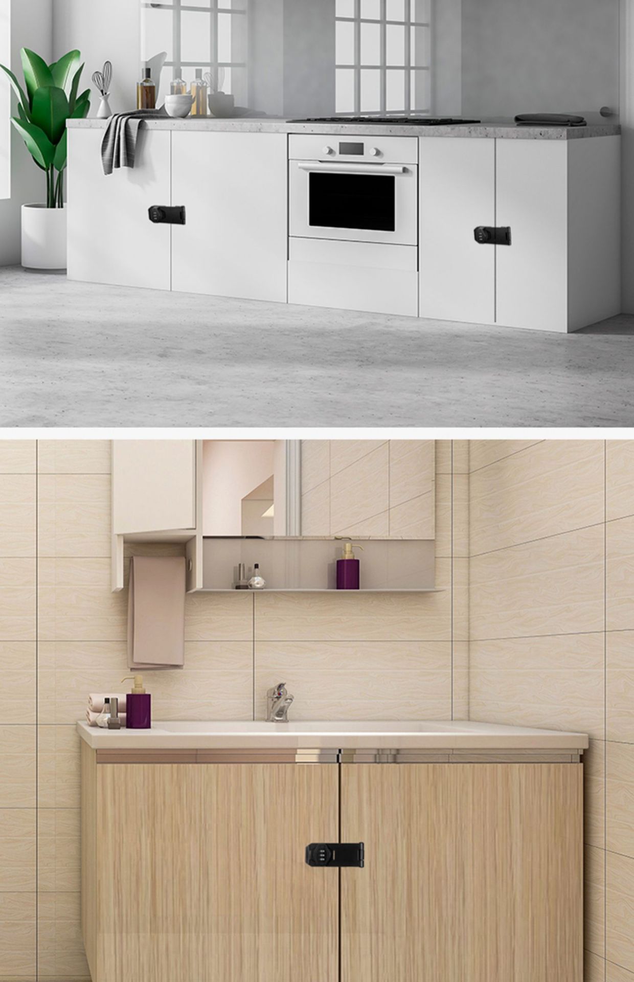 柜门密码锁免打孔冰箱锁防盗抽屉锁双开柜子锁铁皮文件柜锁扣锁具