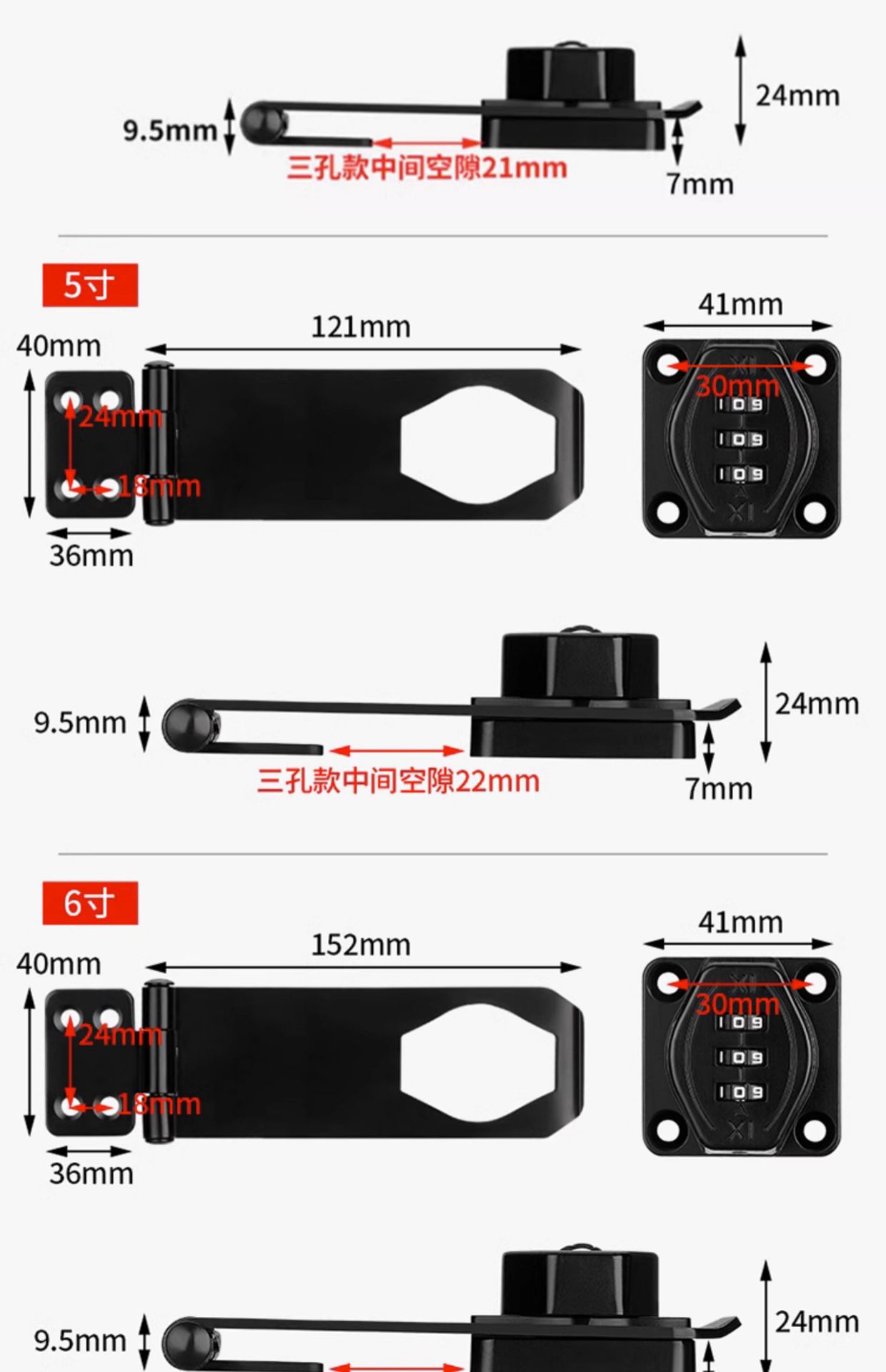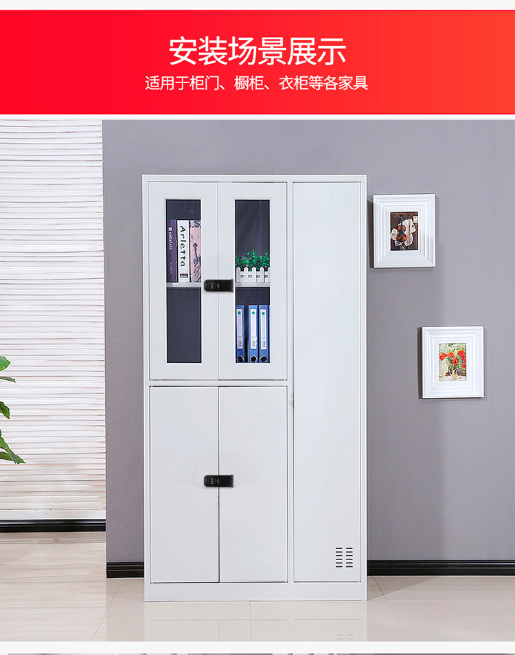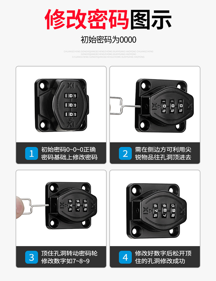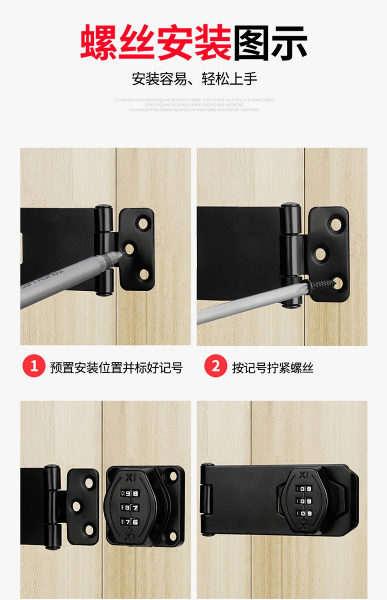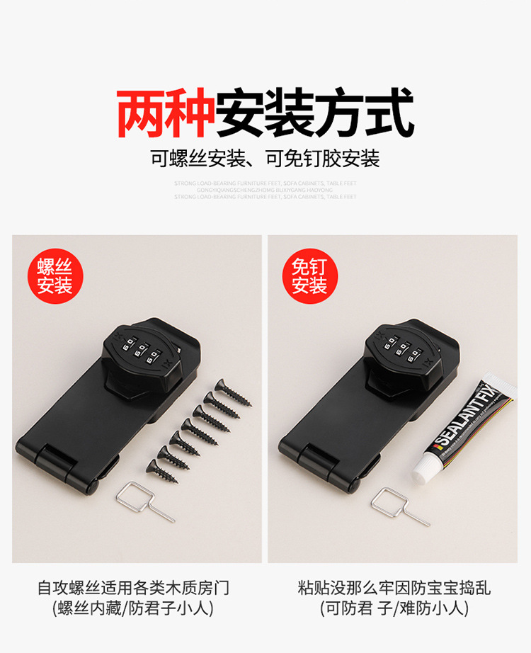 柜门密码锁免打孔冰箱锁防盗抽屉锁双开柜子锁铁皮文件柜锁扣锁具