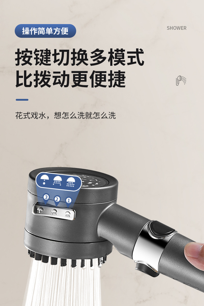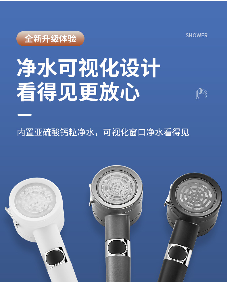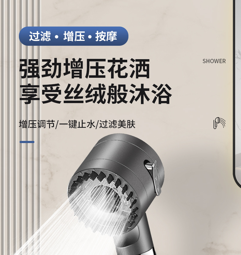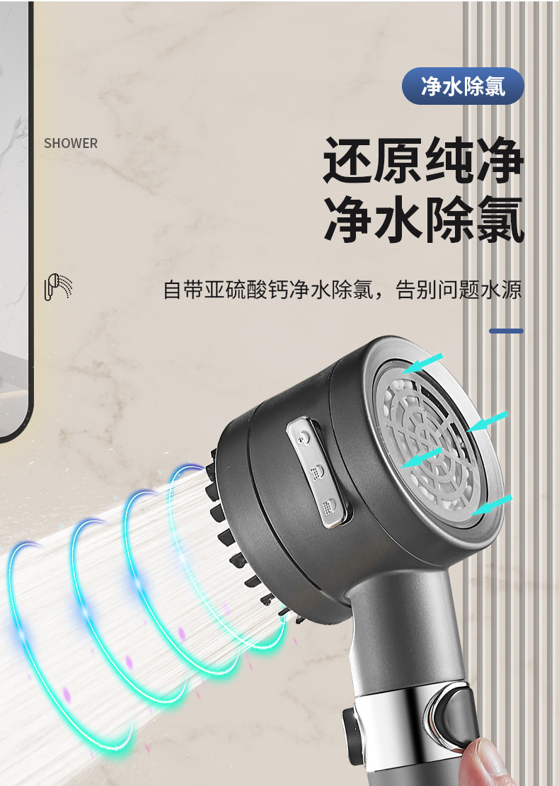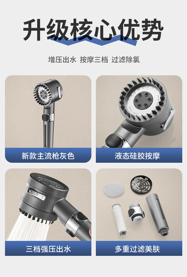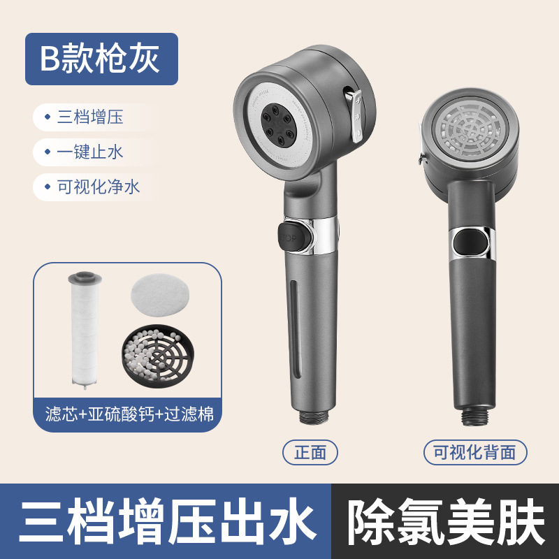三重过滤三档增压除氯花洒喷头淋浴多功能花洒头浴室加压莲蓬头套