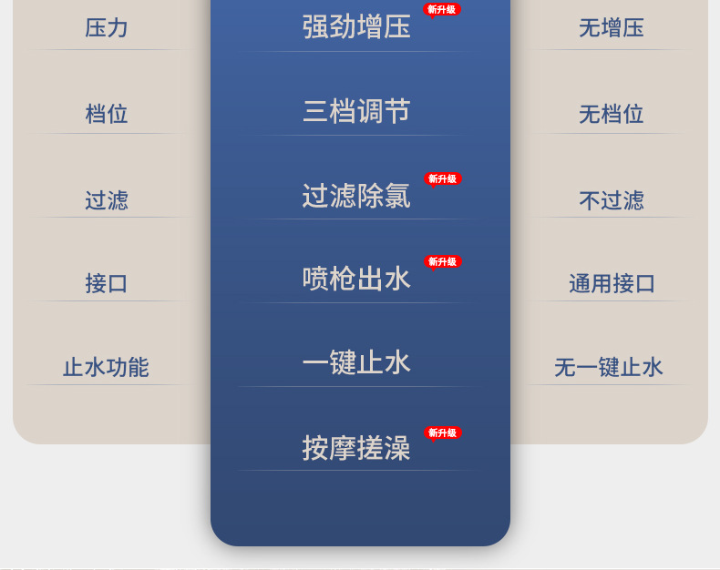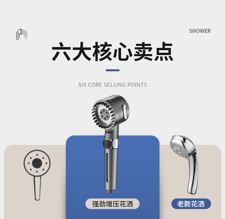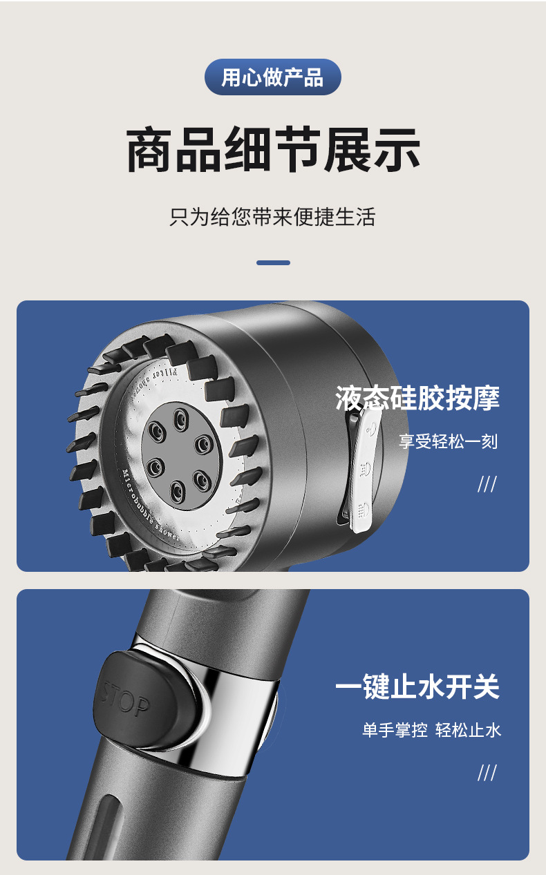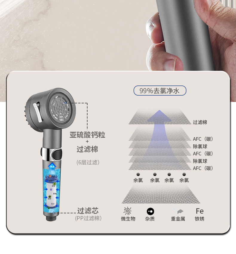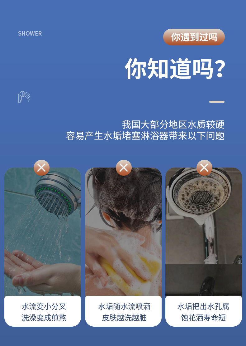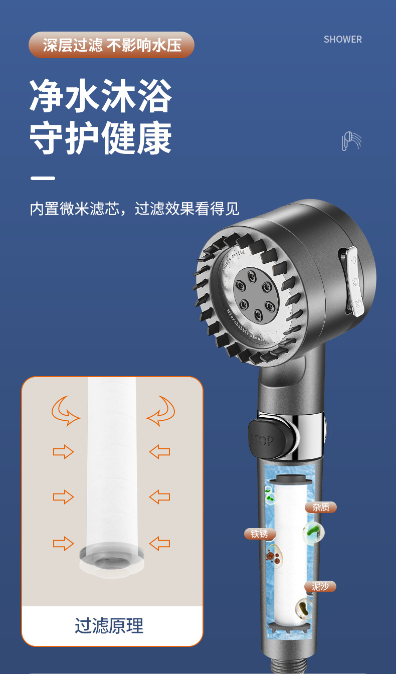 三重过滤三档增压除氯花洒喷头淋浴多功能花洒头浴室加压莲蓬头套