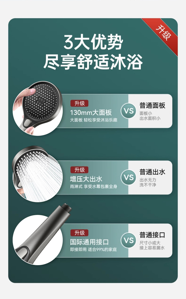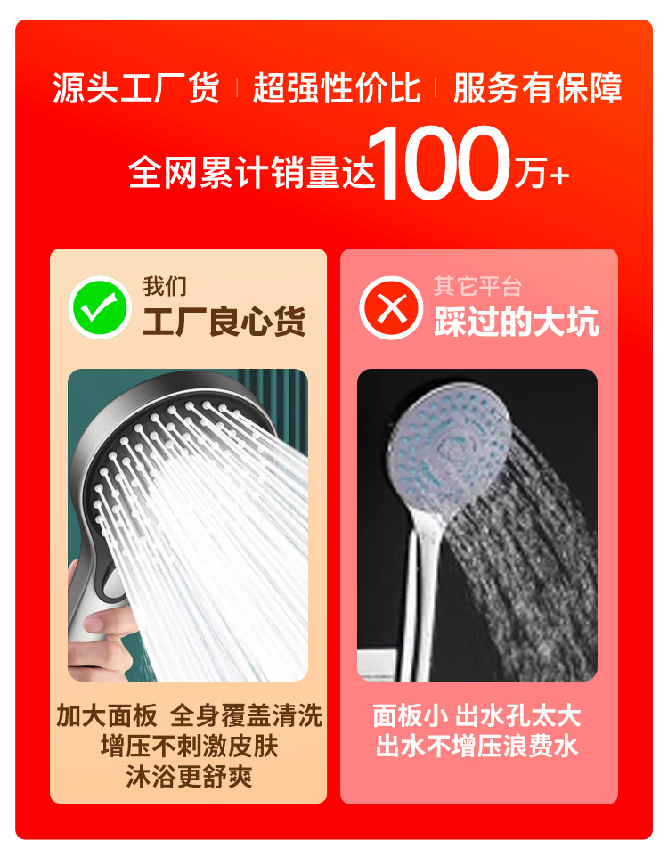 增压花洒喷头超强喷淋浴室家用浴霸淋浴头大出水量淋雨莲蓬头套装