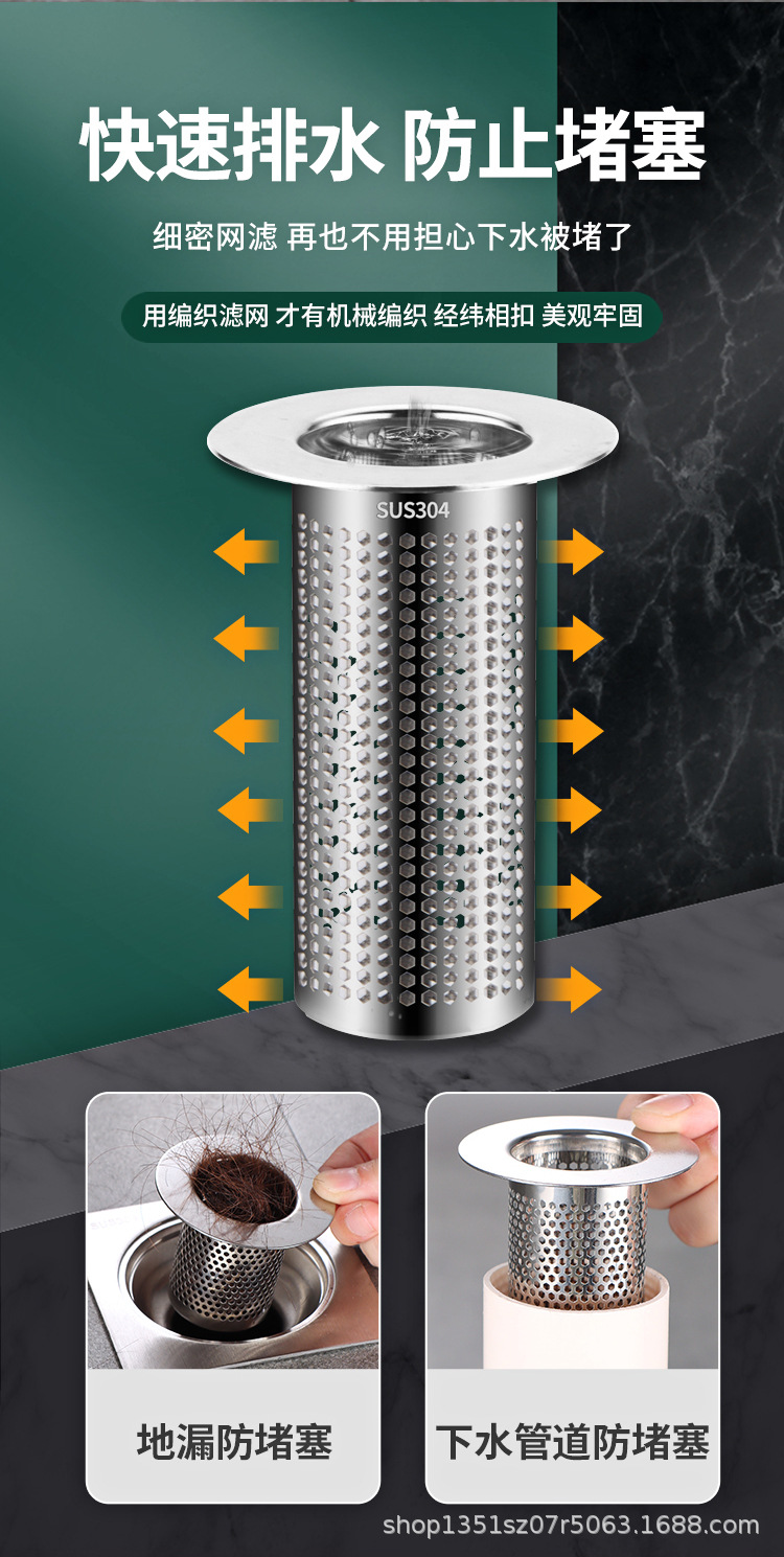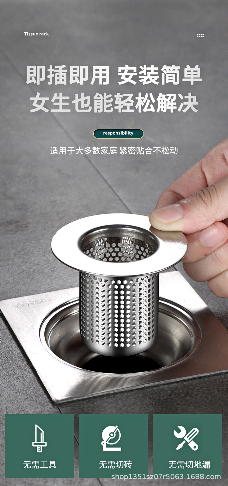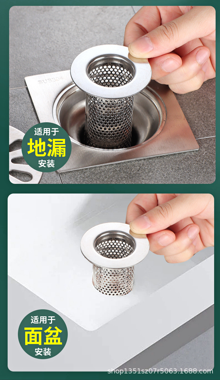 爆款304不锈钢地漏过滤网卫生间防毛发地漏下水道排水口网管道网