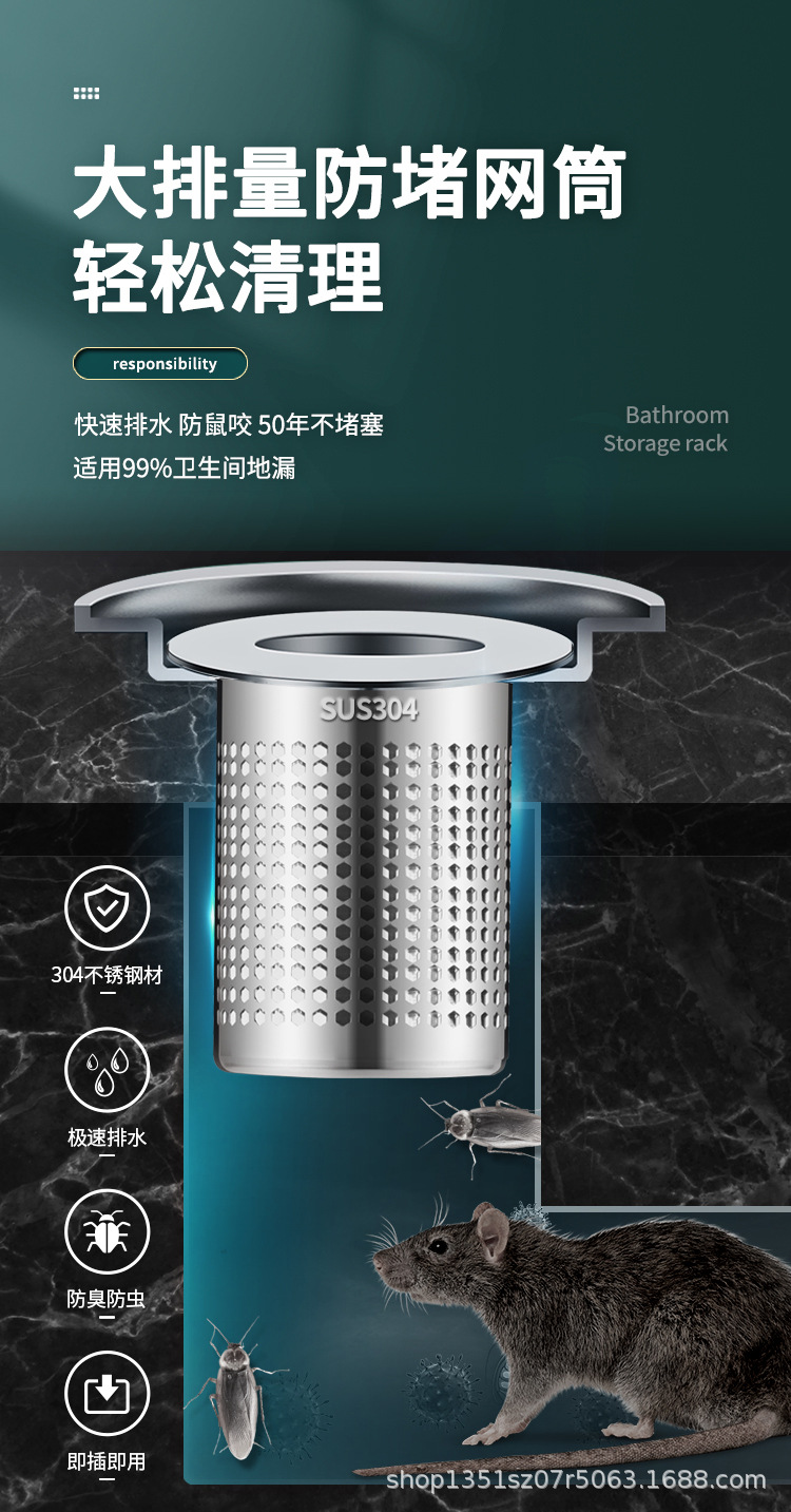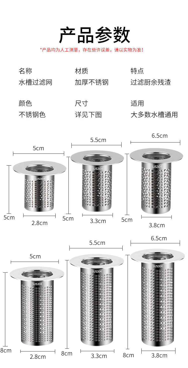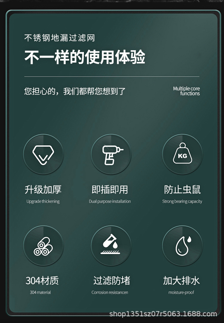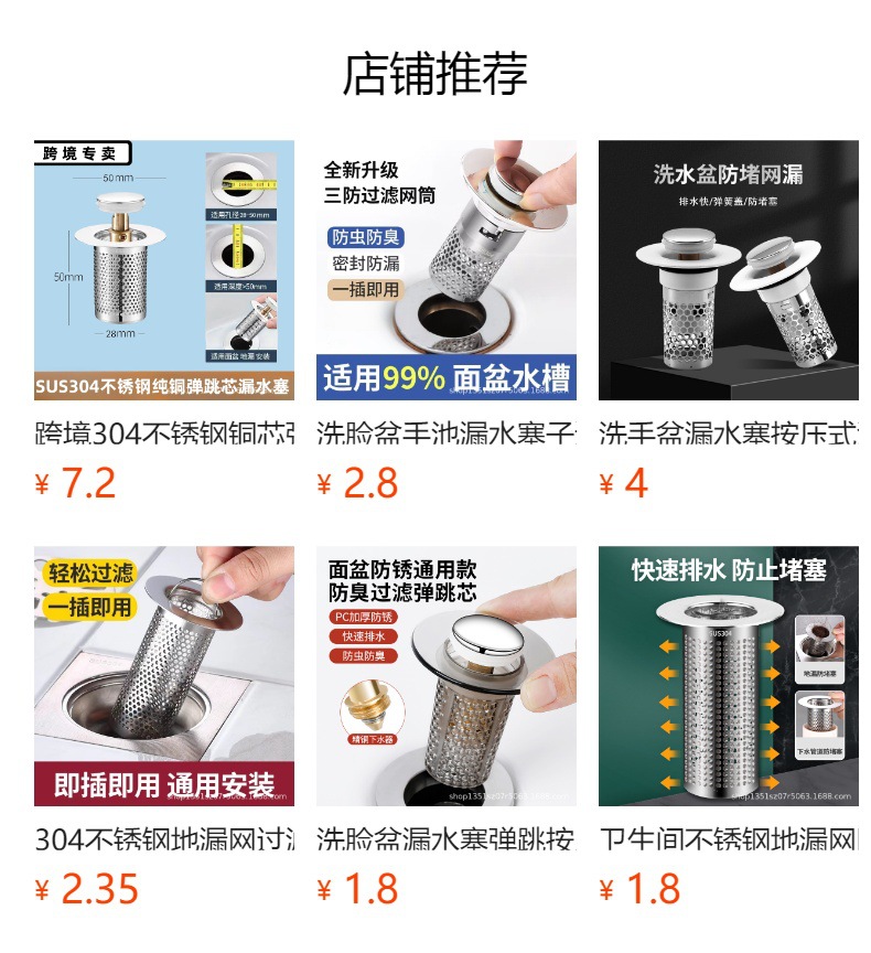 爆款304不锈钢地漏过滤网卫生间防毛发地漏下水道排水口网管道网