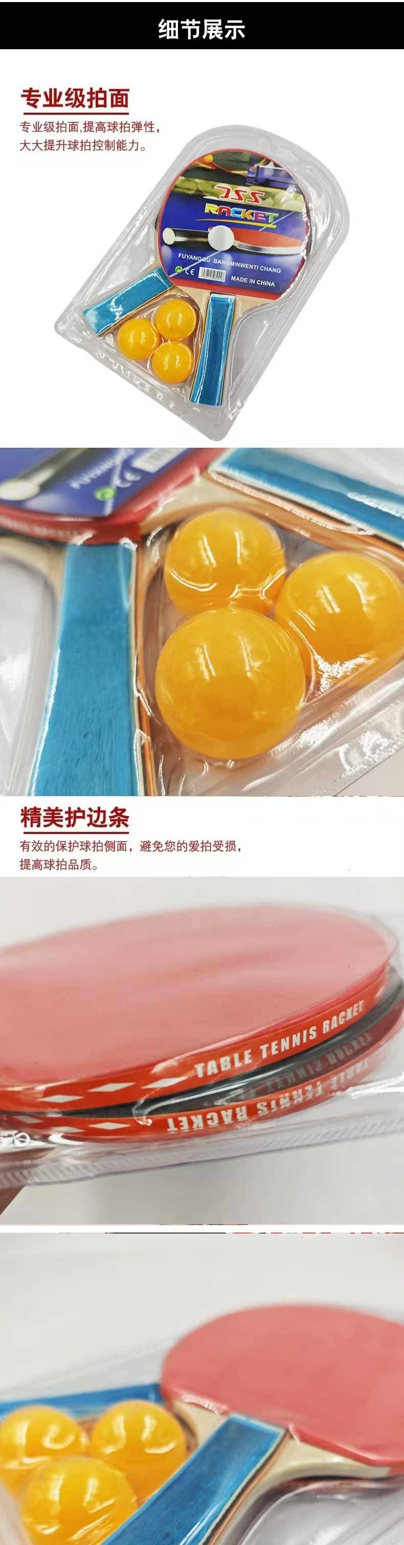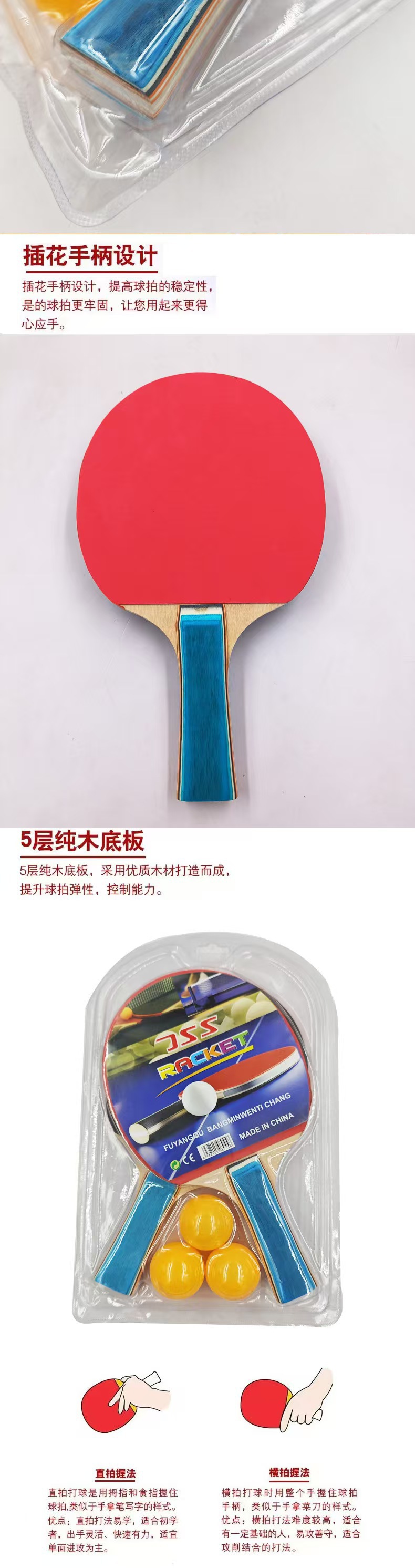 厂家批发乒乓球拍两支装送三球儿童娱乐球拍业余初级拍耐打球拍