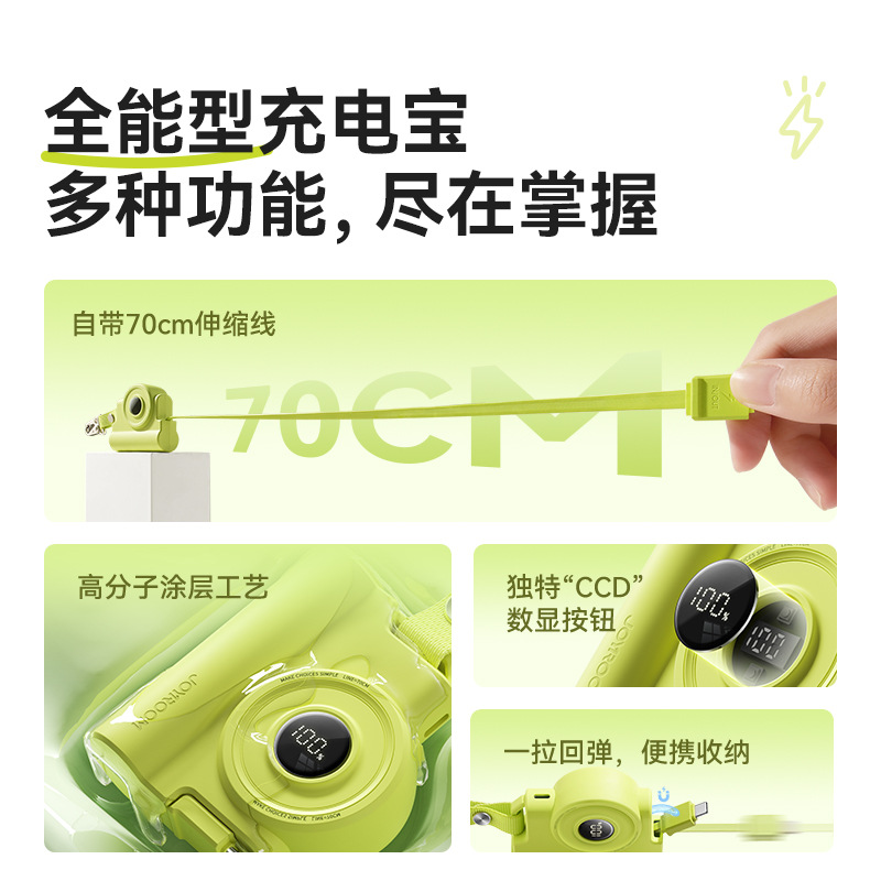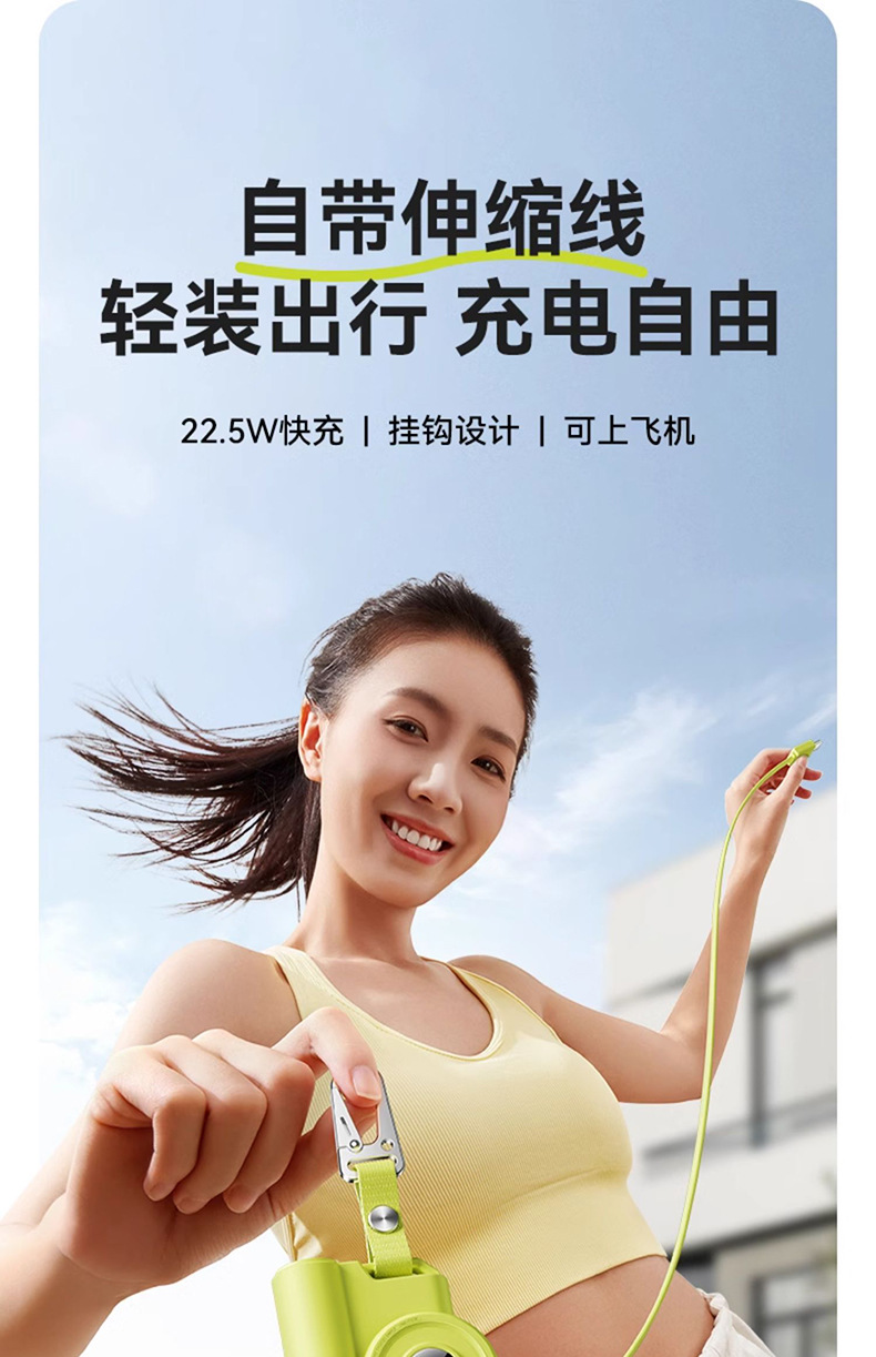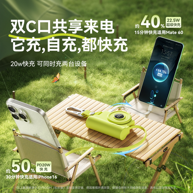 机乐堂新款22.5W迷你小巧5000毫安充电宝快充带挂扣便携移动电源