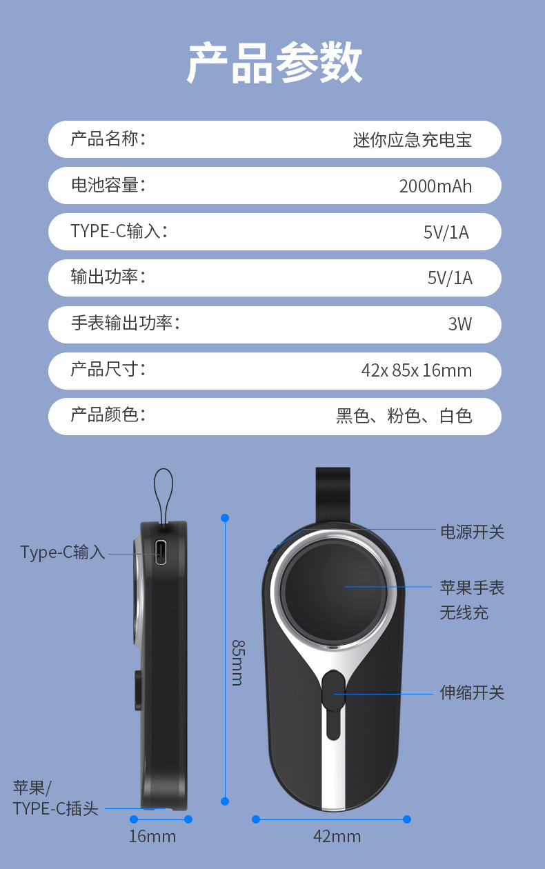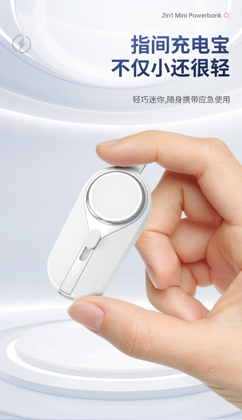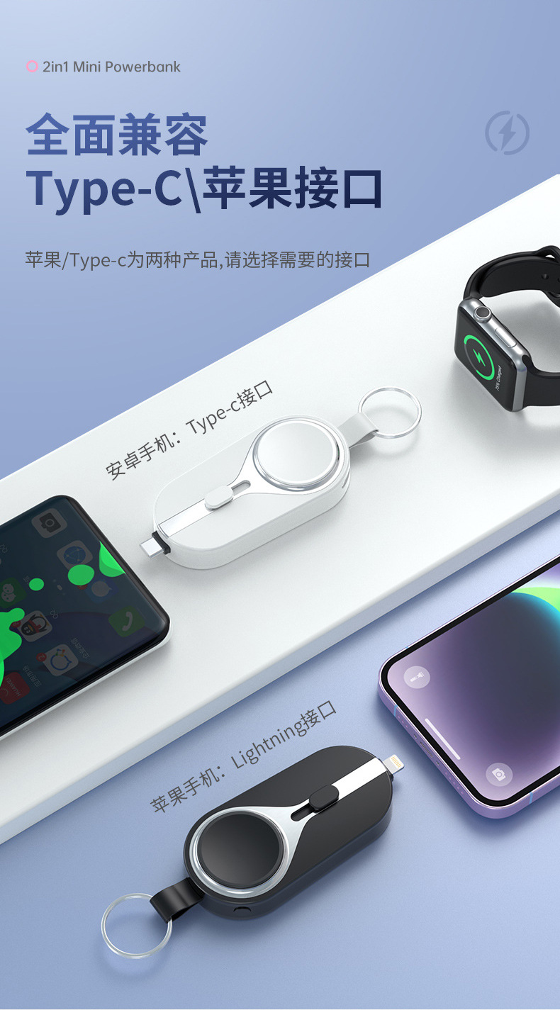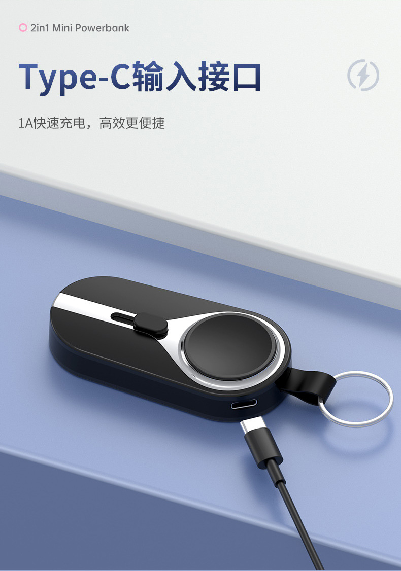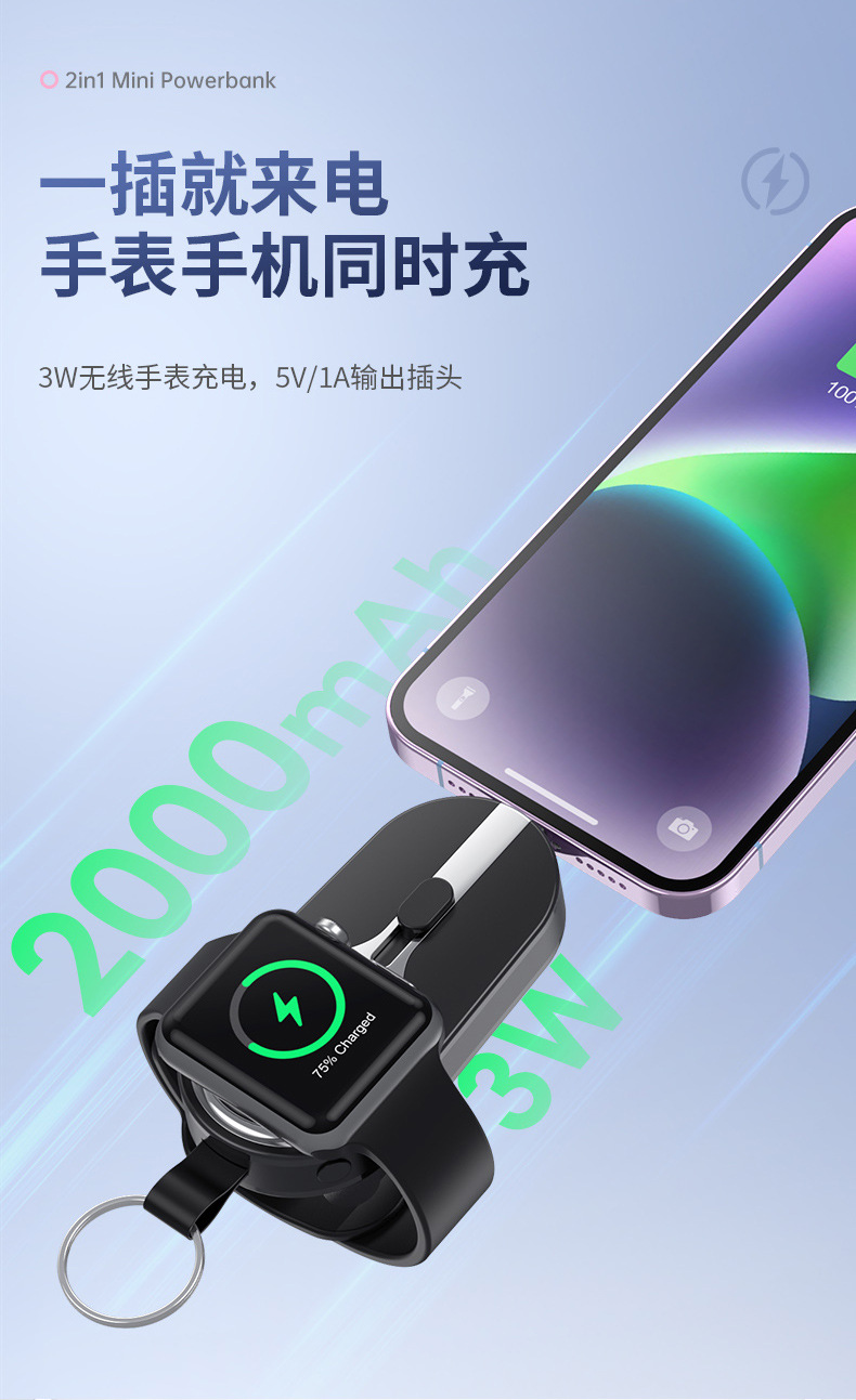 新款钥匙扣充电宝超薄迷你便携应急充手表无线充电二合一2000毫安