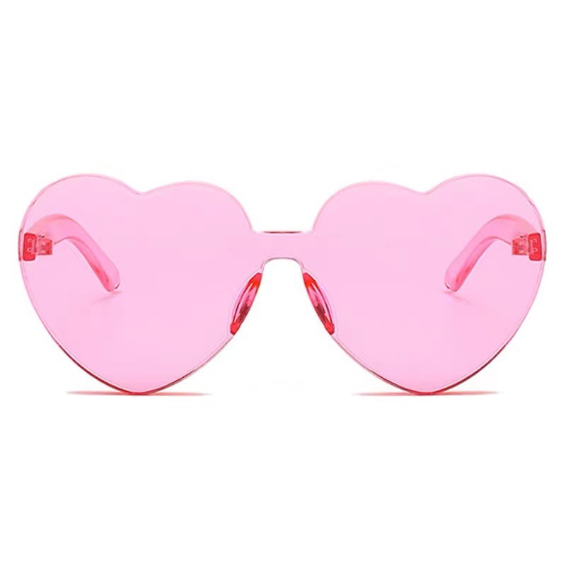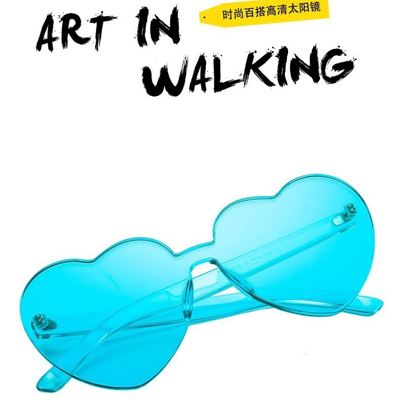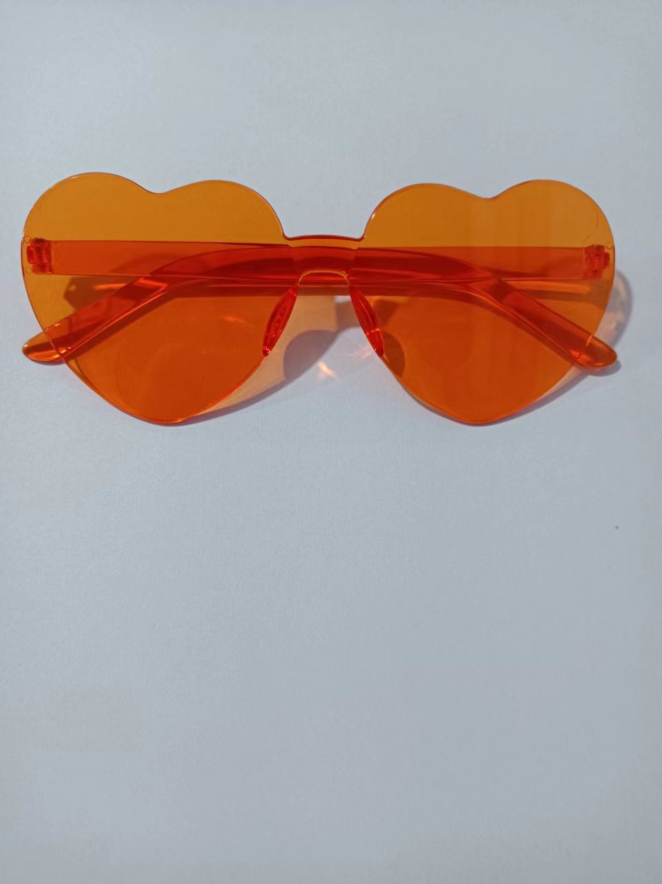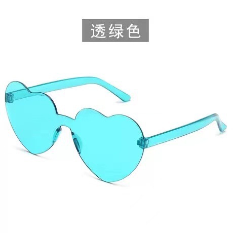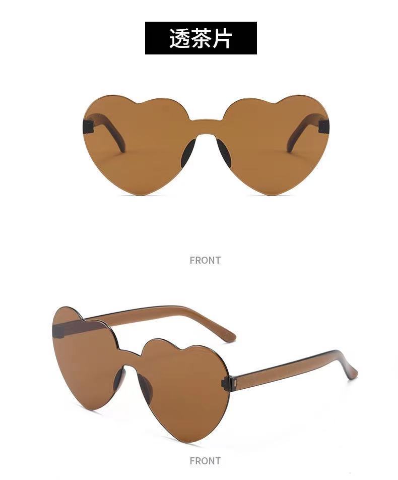 桃心太阳镜 爱心太阳眼镜 果冻色无框心型连体眼镜 炫目色彩眼镜