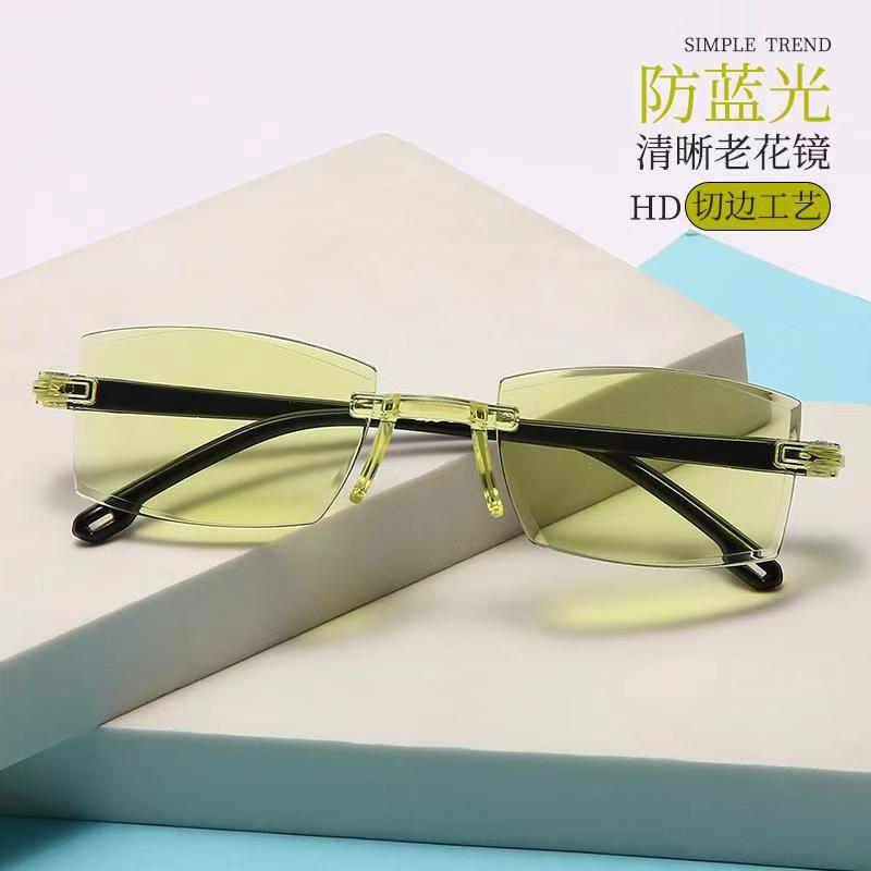 防蓝光钻石切边双光老花镜无框一体高清远近两用变焦小黄镜老花眼
