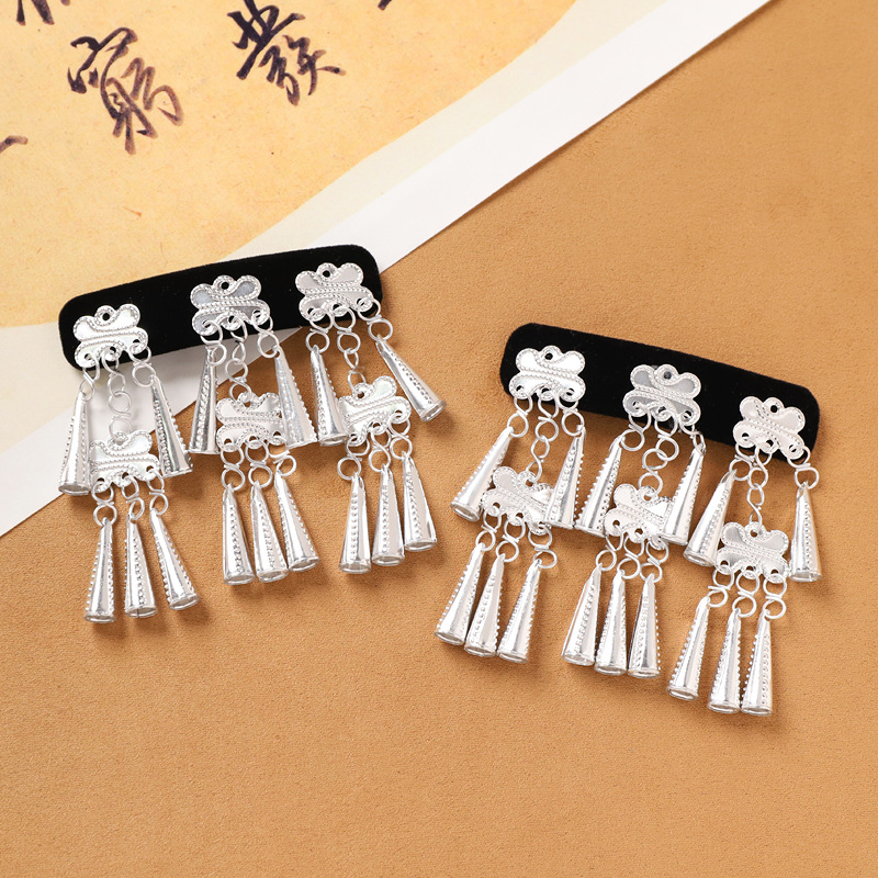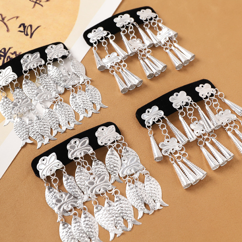 new chinese ethnic style miao silver tassel hairpin retro minority bangs side clip hair accessories miao women archaistic headdress