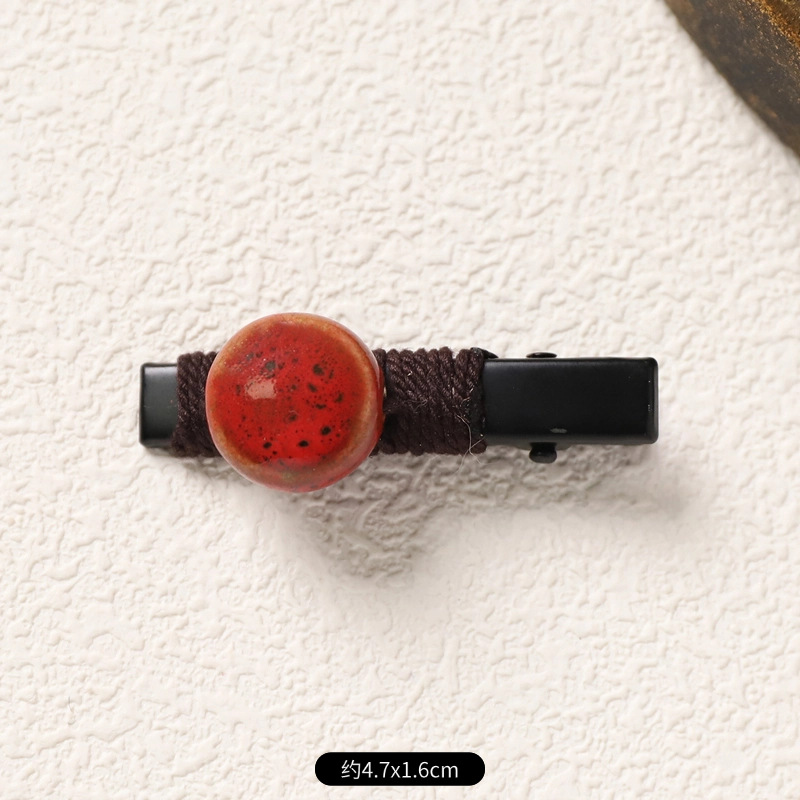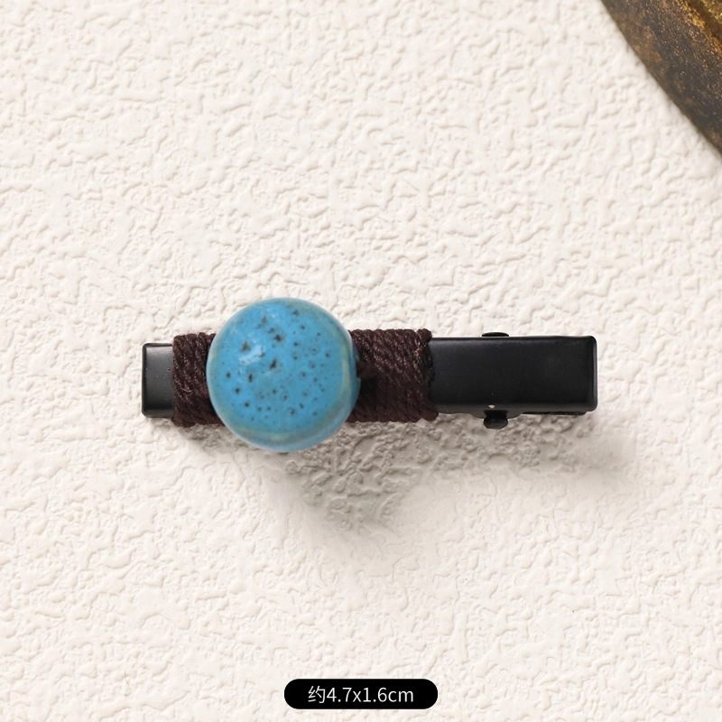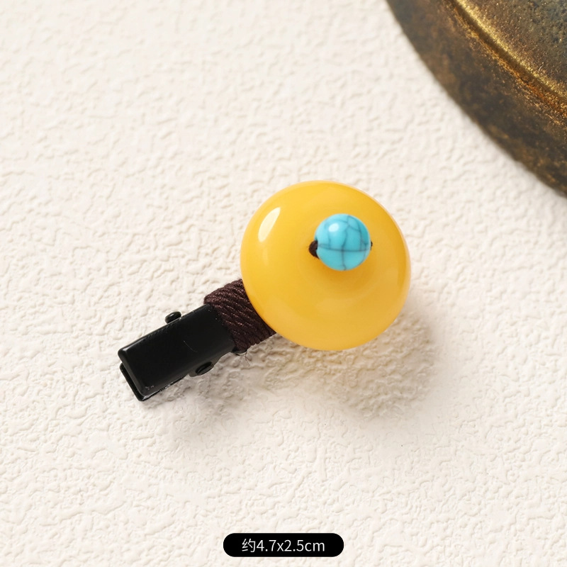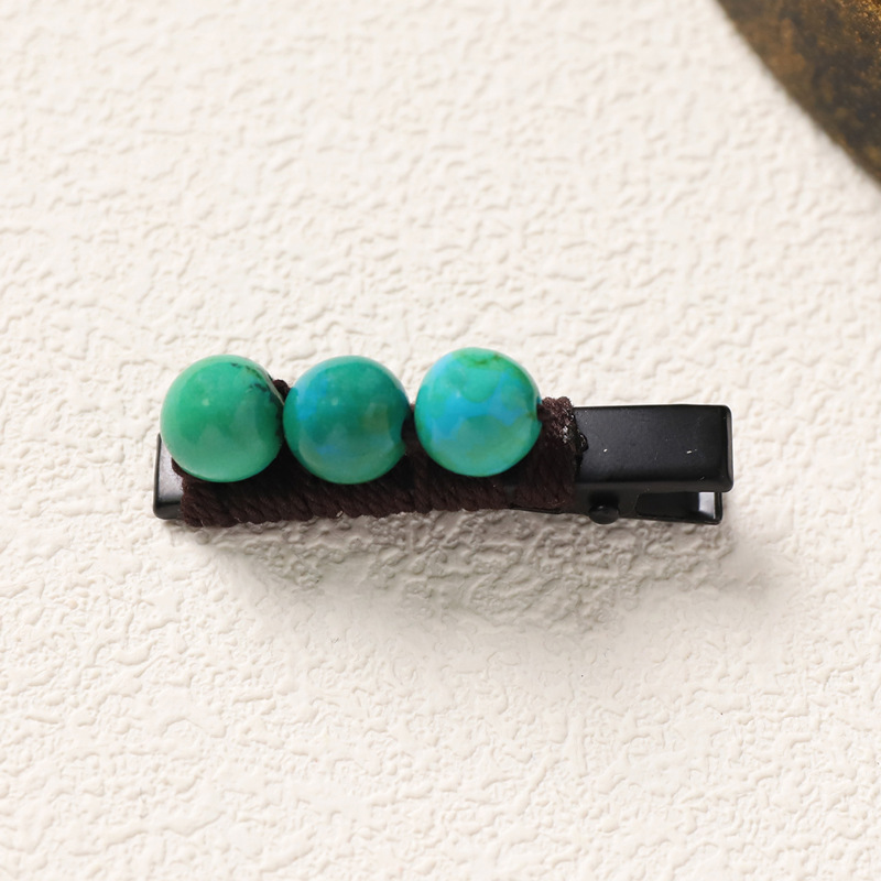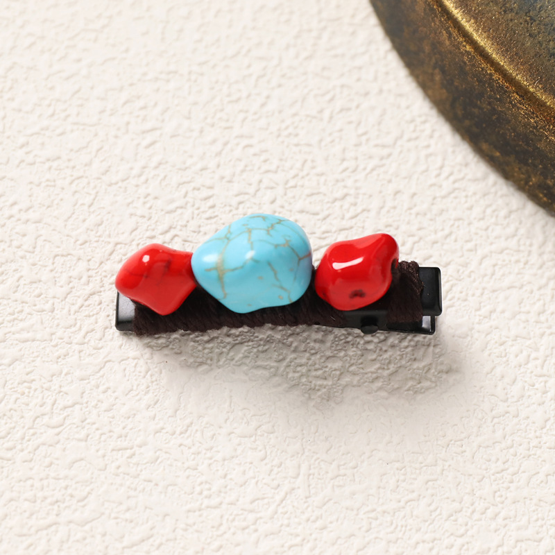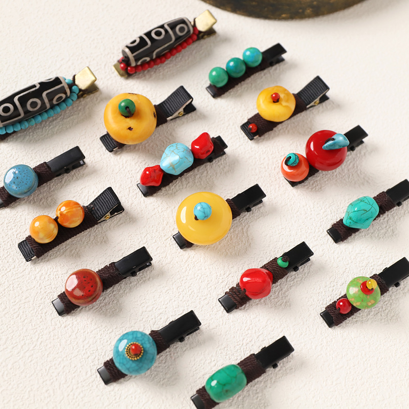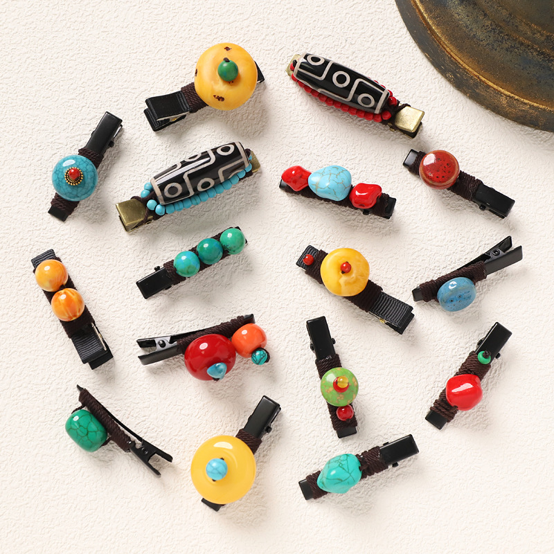 民族风复古手工发夹小众精致编织松石蜜蜡刘海侧边夹藏式女发饰品