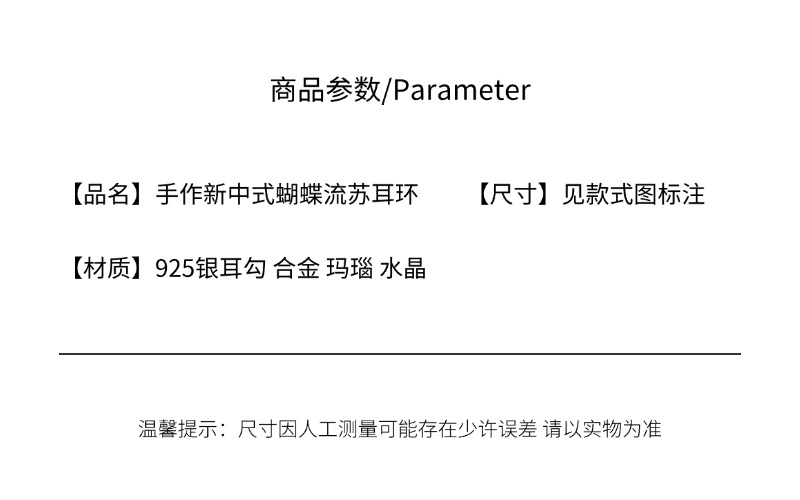 新中式蝴蝶流苏耳环小众设计高级感国风长耳坠气质女旗袍古风耳饰