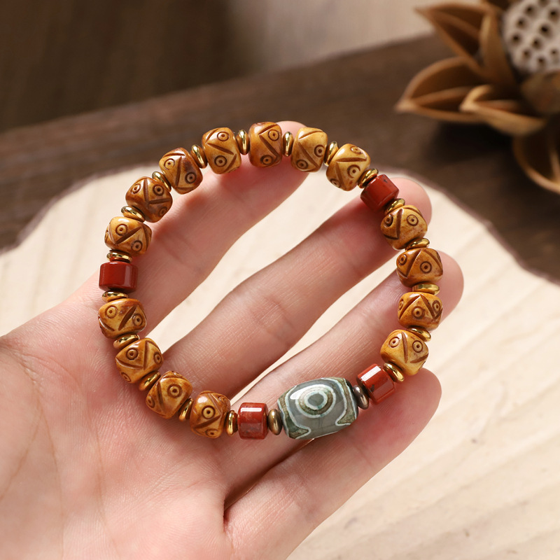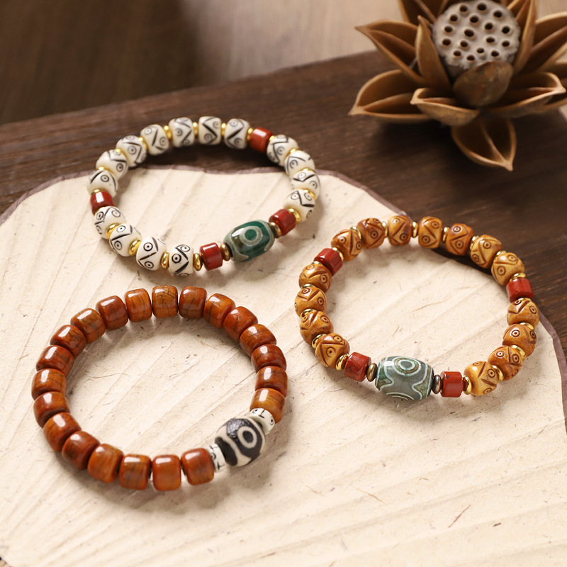 西藏天然牦牛骨雕刻手串天珠玛瑙复古民族风男女藏式念珠文玩手链