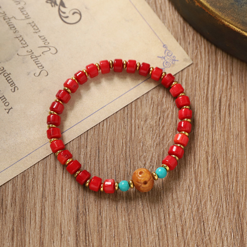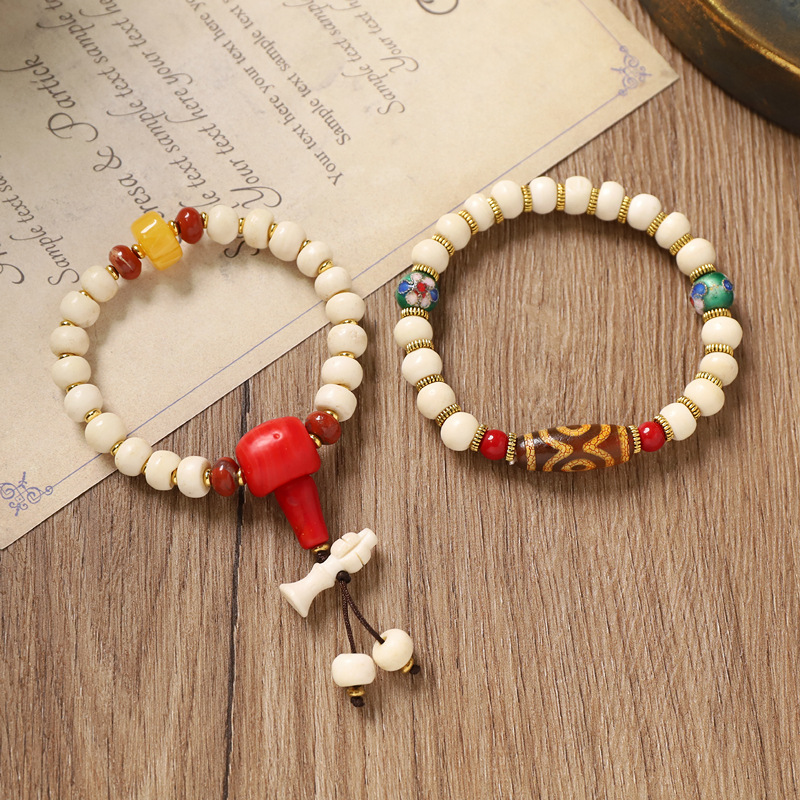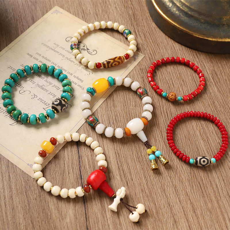 藏式复古民族风手串牛骨松石串珠西藏异域风手链男女菩提佛珠配饰