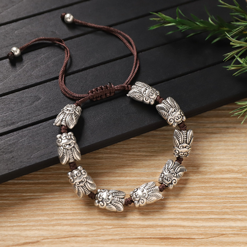 手工编织民族风手链复古银铜钱小鱼新中式手串小众国风手绳配饰女