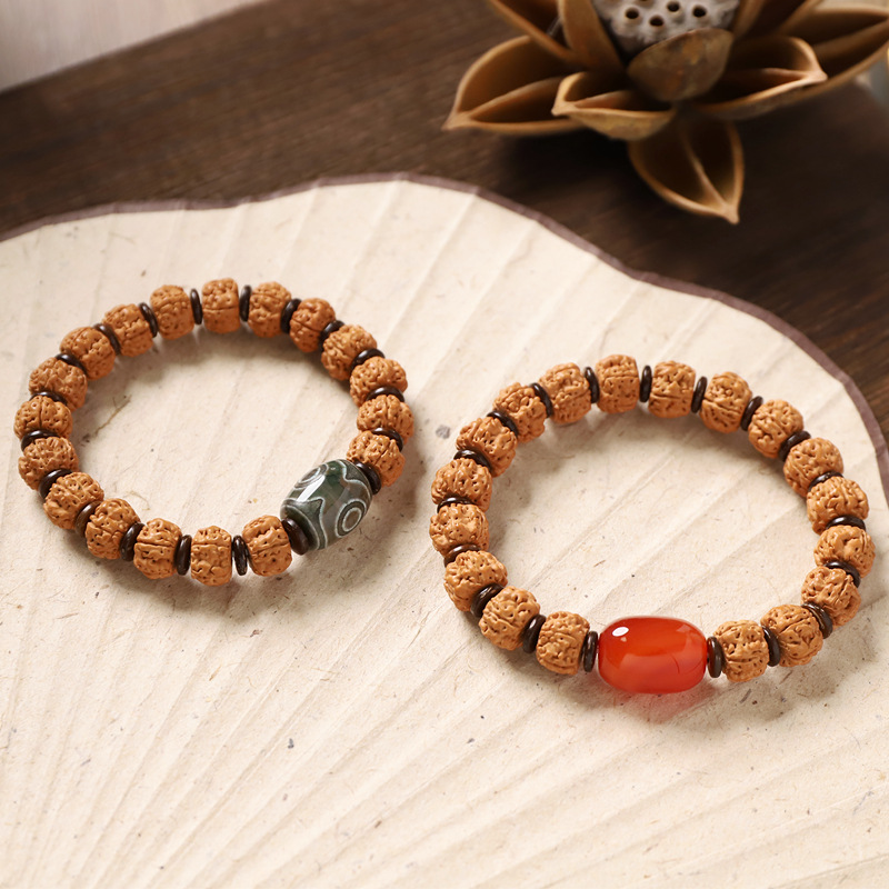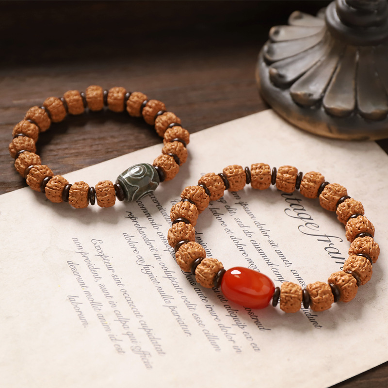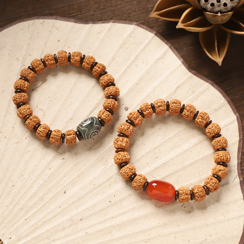 藏式小金刚菩提子天珠玛瑙手串男女核桃原籽文玩佛珠单圈盘玩手链