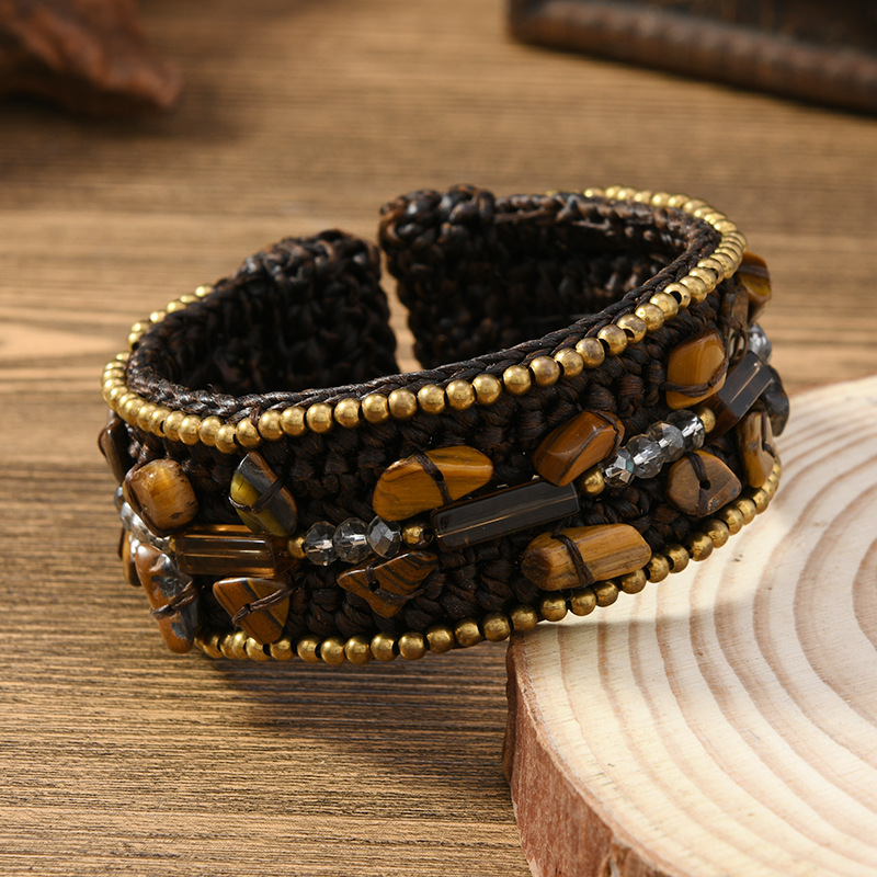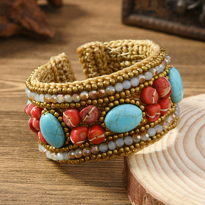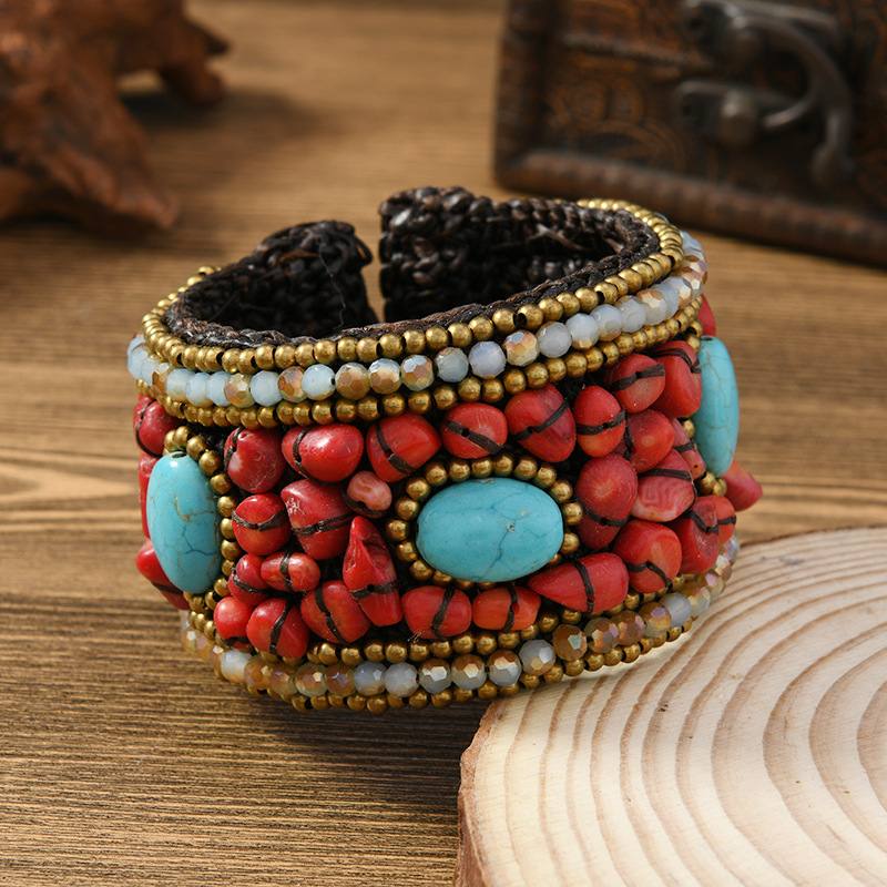 重工编织民族风天然石手镯波西米亚复古异域风女个性藏式手环配饰