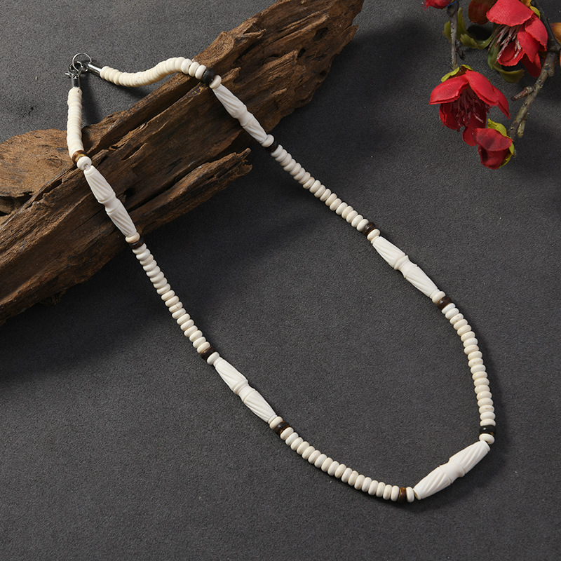 手工雕刻牦牛骨项链串珠藏式民族风复古小众锁骨链男女个性配饰品