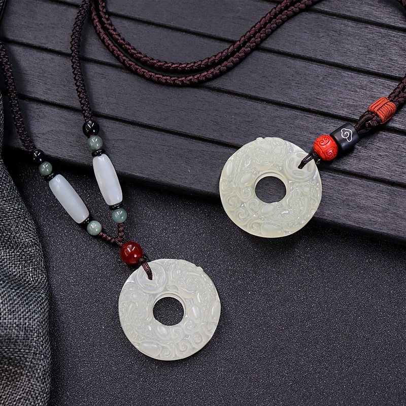 青玉石貔貅项链男女百搭高档毛衣链长款平安扣古风挂件秋冬配饰品