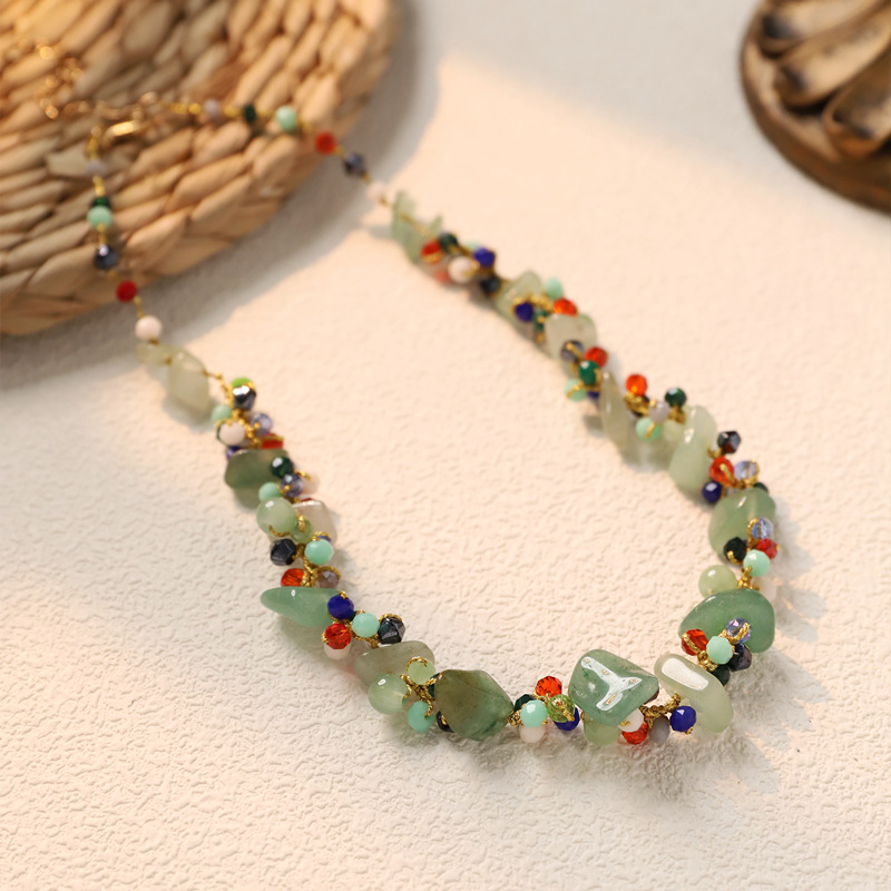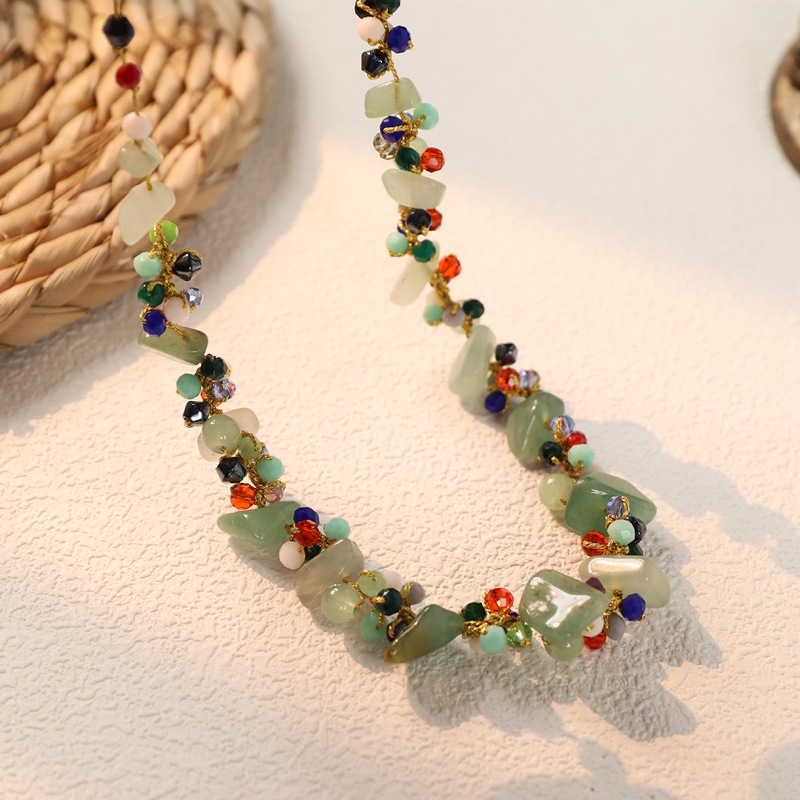 天然石森系项链手工编织复古文艺锁骨链波西米亚民族风小众颈链女